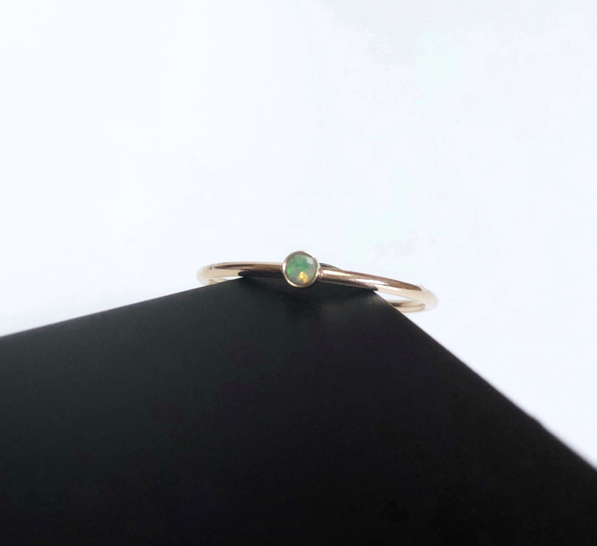 Material: • Gold filled • Roségold filled • 925 Sterling-Silber Stein: • Welo Opal • 2mm Ring: • Breite der Ringschiene: ca. 1 mm • Ringkopf: ca. 2,5 mm im Durchmesser