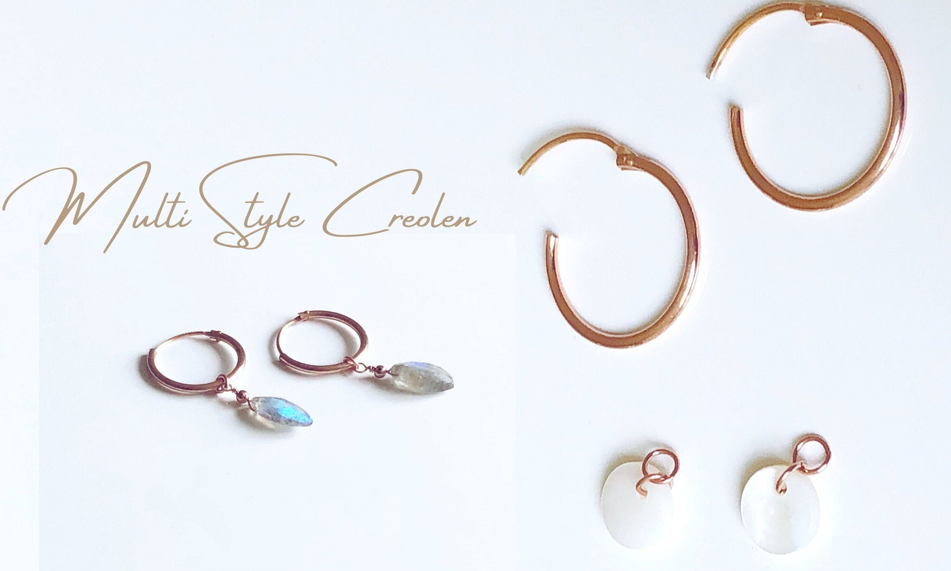 Diese wandelbaren Ohrringe dürfen in keiner Schmuckkästchen fehlen. Die zarten Creolen gibt es in verschiedenen größen und mit nur einem Handgriff kannst Du die Ohrringe je nach Outfit umgestalten. Trage die filigranen Ohrringe zum Beispiel im Büro ohne Anhänger, zum Feierabend brauchst Du nur einen Handgriff um die Anhänger aufzufädeln und schon wirken die Ohrringe ganz anders. Die Creolen sind sehr bequem und können problemlos den ganzen Tag getragen werden. Auch bei den Anhängern achten wir immer sehr darauf, dass sie leicht sind und man kein Gewicht spürt. Alle unsere Creolen-Anhänger sind auf unsere Creolen abgestimmt und passgenau gearbeitet. Jeden Monat gibt es neue Anhänger die Du hier bei uns kaufen kannst. Gerne bauen wir Dir auch Anhänger mit Deinen Lieblingssteinen. Die kleinen Perlmutt-Anhänger haben eine Größe von 5mm und sind inkl. Öse ca. 7mm lang. Creolen: 925 Sterling Silber, Gold filled oder vergoldetes (Roségold) Sterling Silber Die Ohrringe kommen in unserer Schmuckschachtel zu Dir.