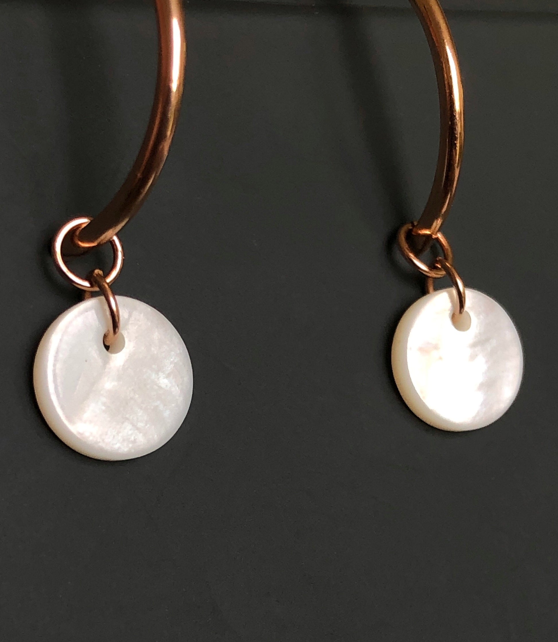 Roségold Creolen mit Perlmutt Anhänger, Auswechselbare Ohrringe, Hänge Ohrringe mit Plättchen, Gold filled Creolen, Sterling Silber Creolen
