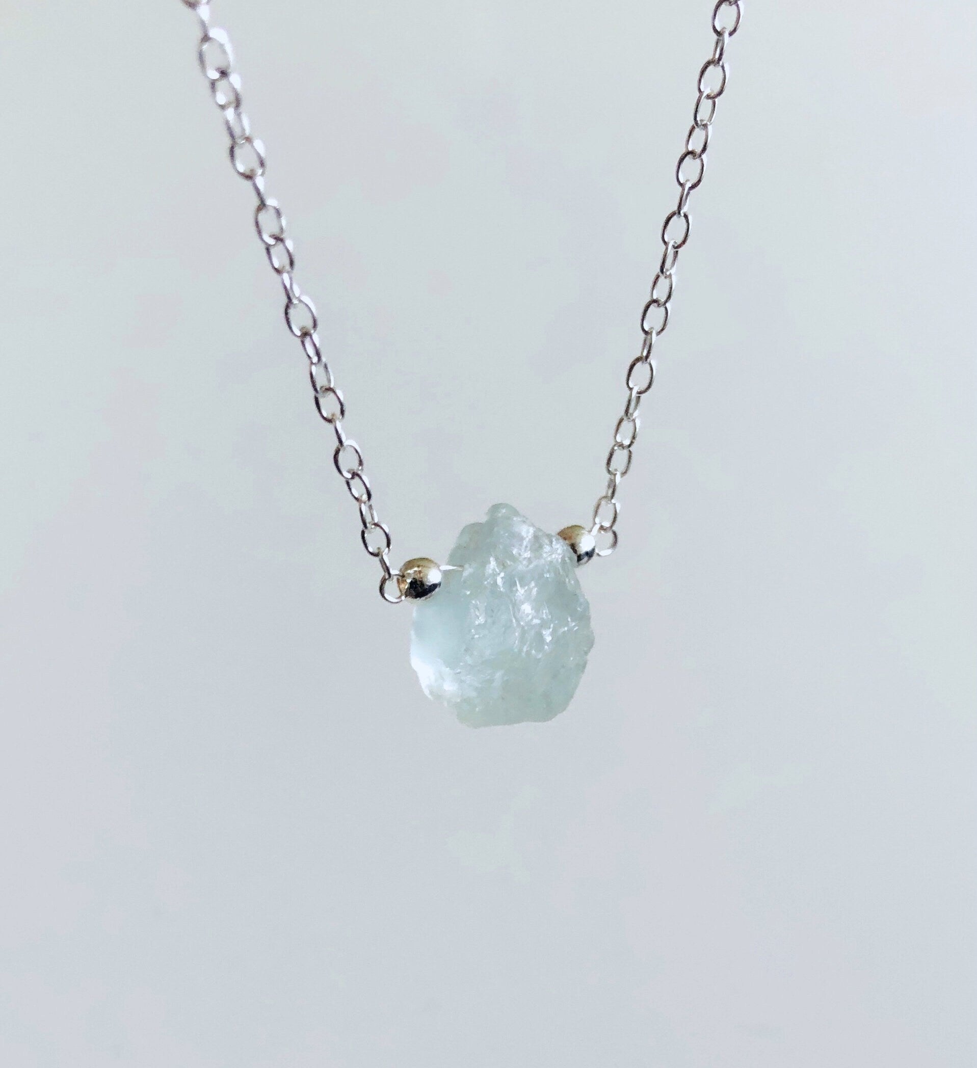 Aquamarin Rohstein Kette, Minimalistische Halskette mit Naturstein, März Geburtssteinkette