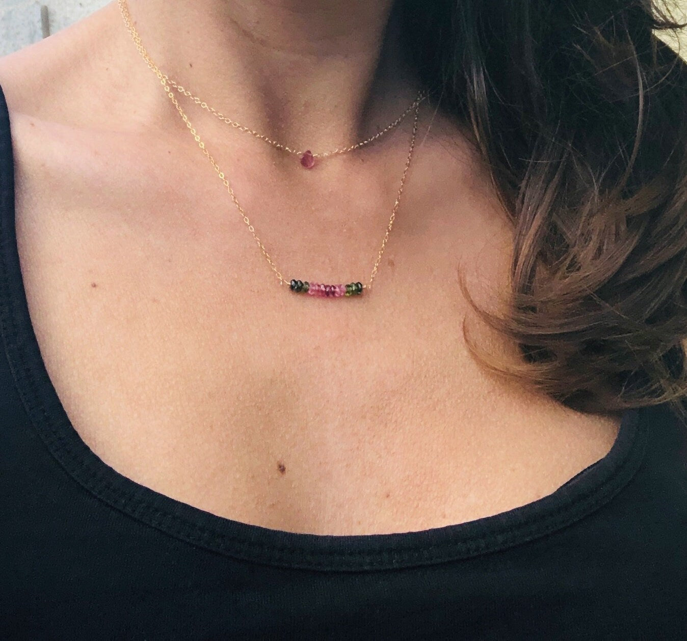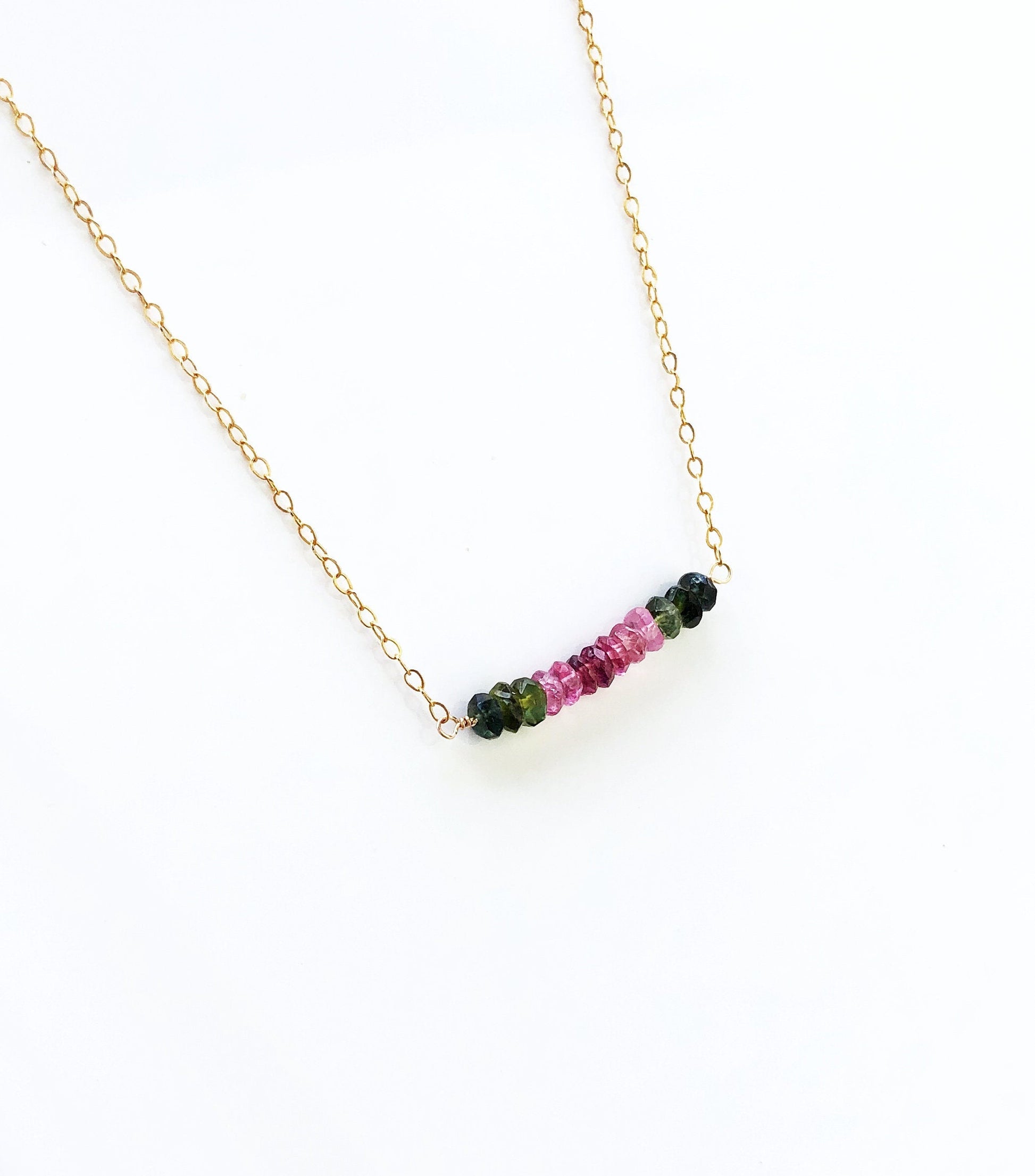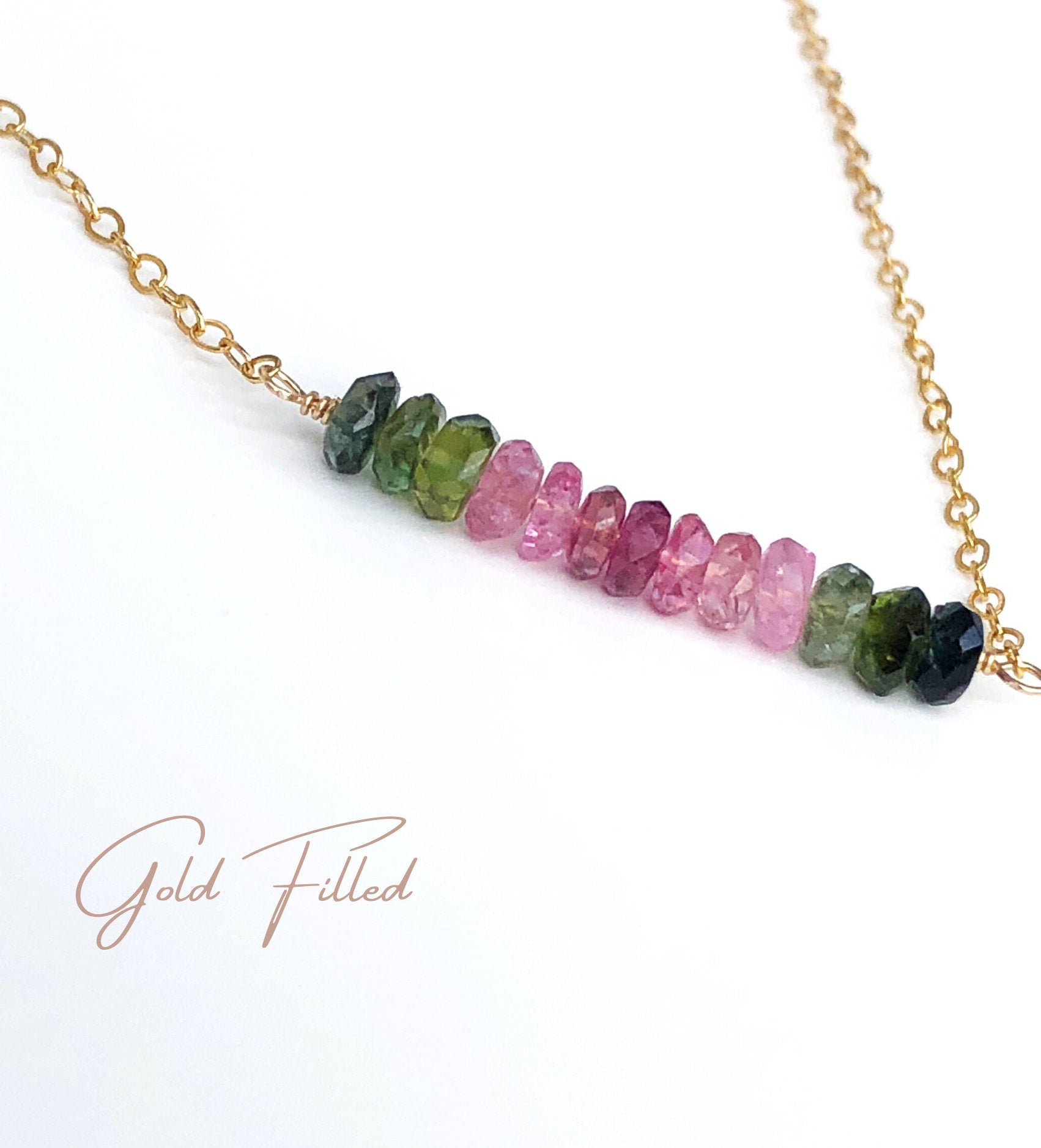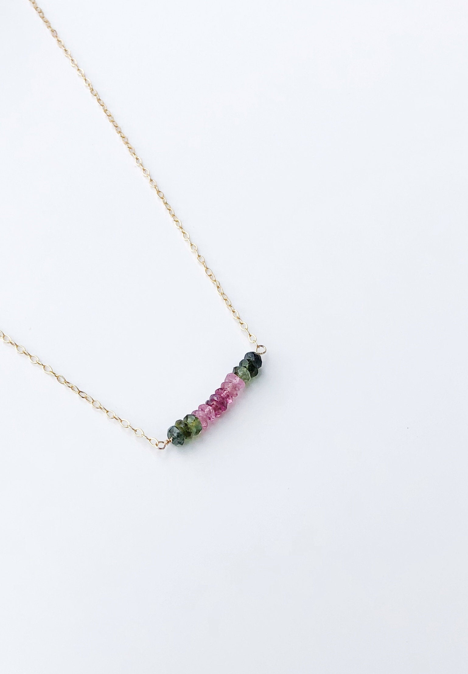 Bunte Turmalin Halskette, Wassermelonen Turmalin Kette, Zarte Layering Halskette mit Turmalin Perlen, Oktober Geburtsstein