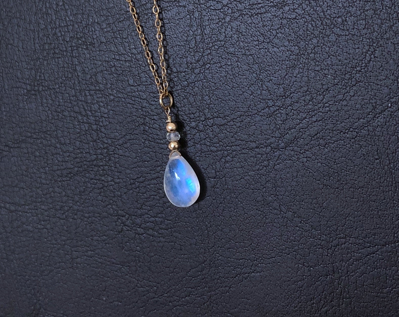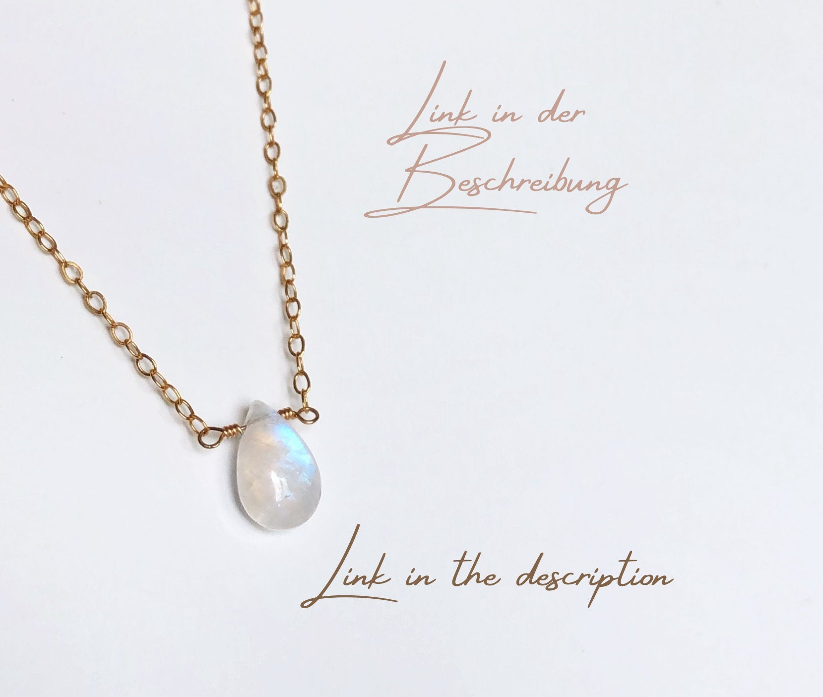 Material • 925 Sterling Silber, Gold filled, Roségold filled Stein • Regenbogen Mondstein, Tropfenform 10mm • Regenbogen Mondstein, Perle 2,5mm Kette • Inkl. Verlängerungskette • 40cm - 70cm / 16" - 27"