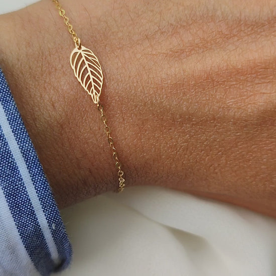 Armband mit Blatt, schlichtes Gold Armband, vergoldetes Sterling Silber