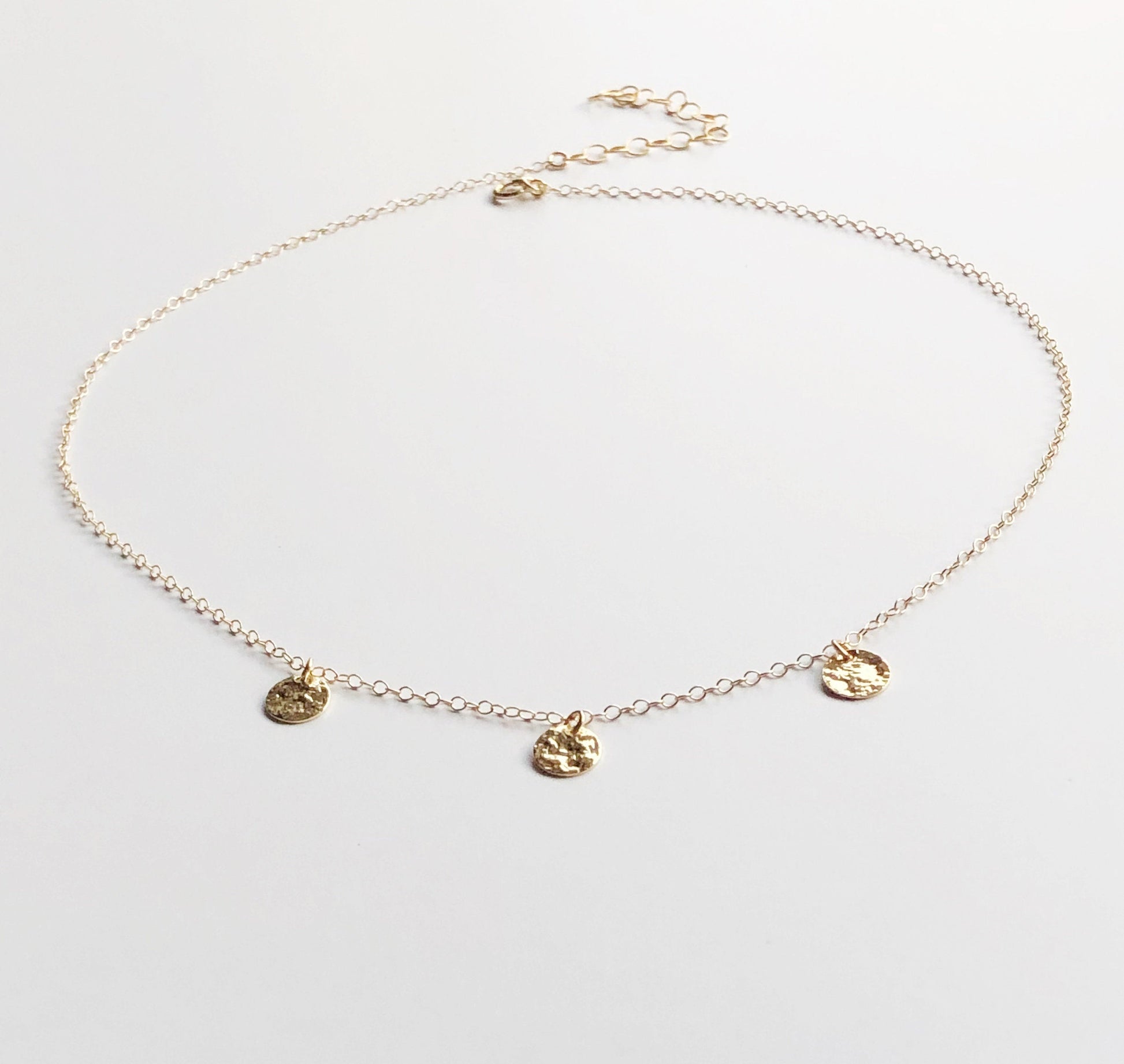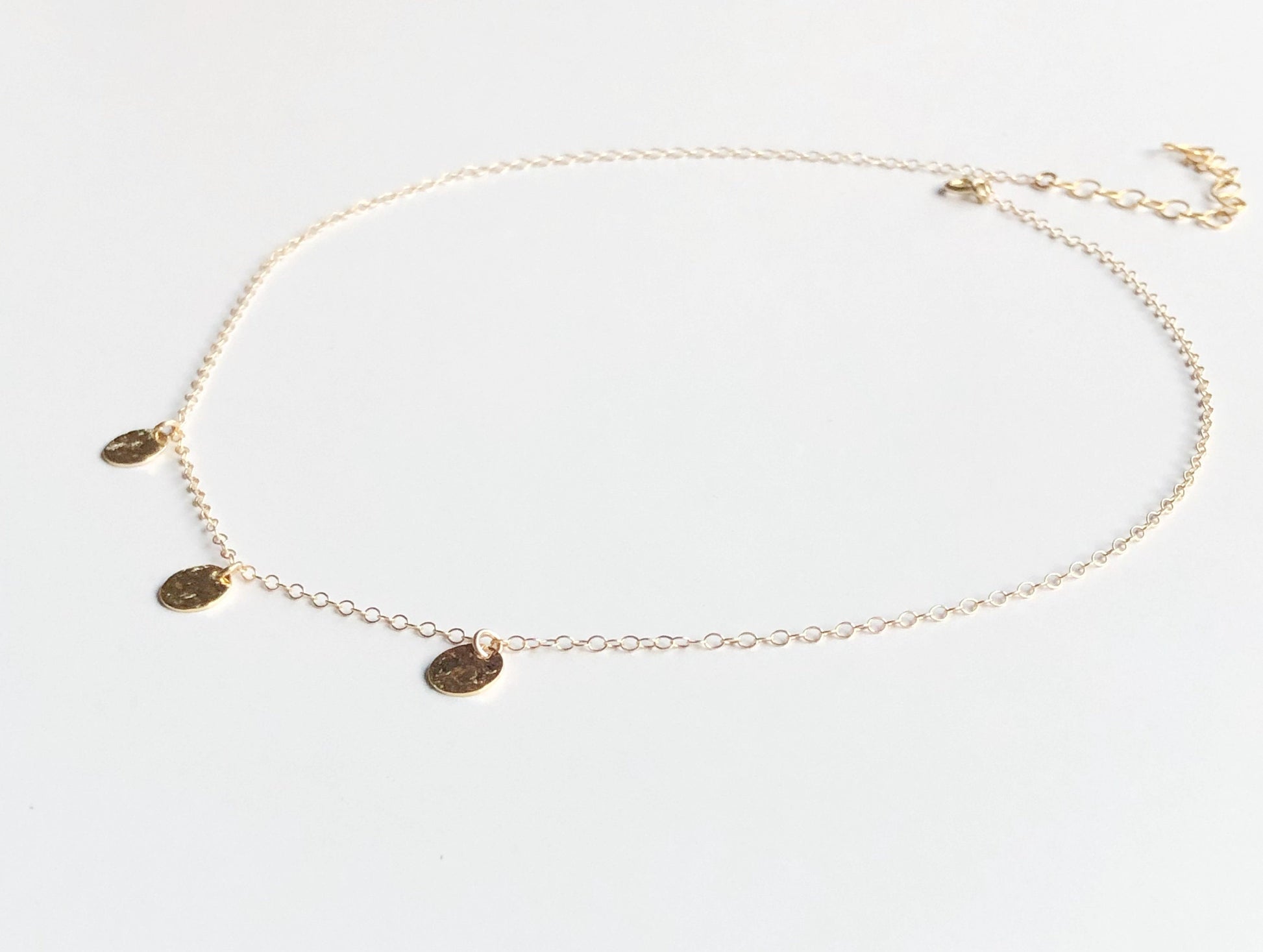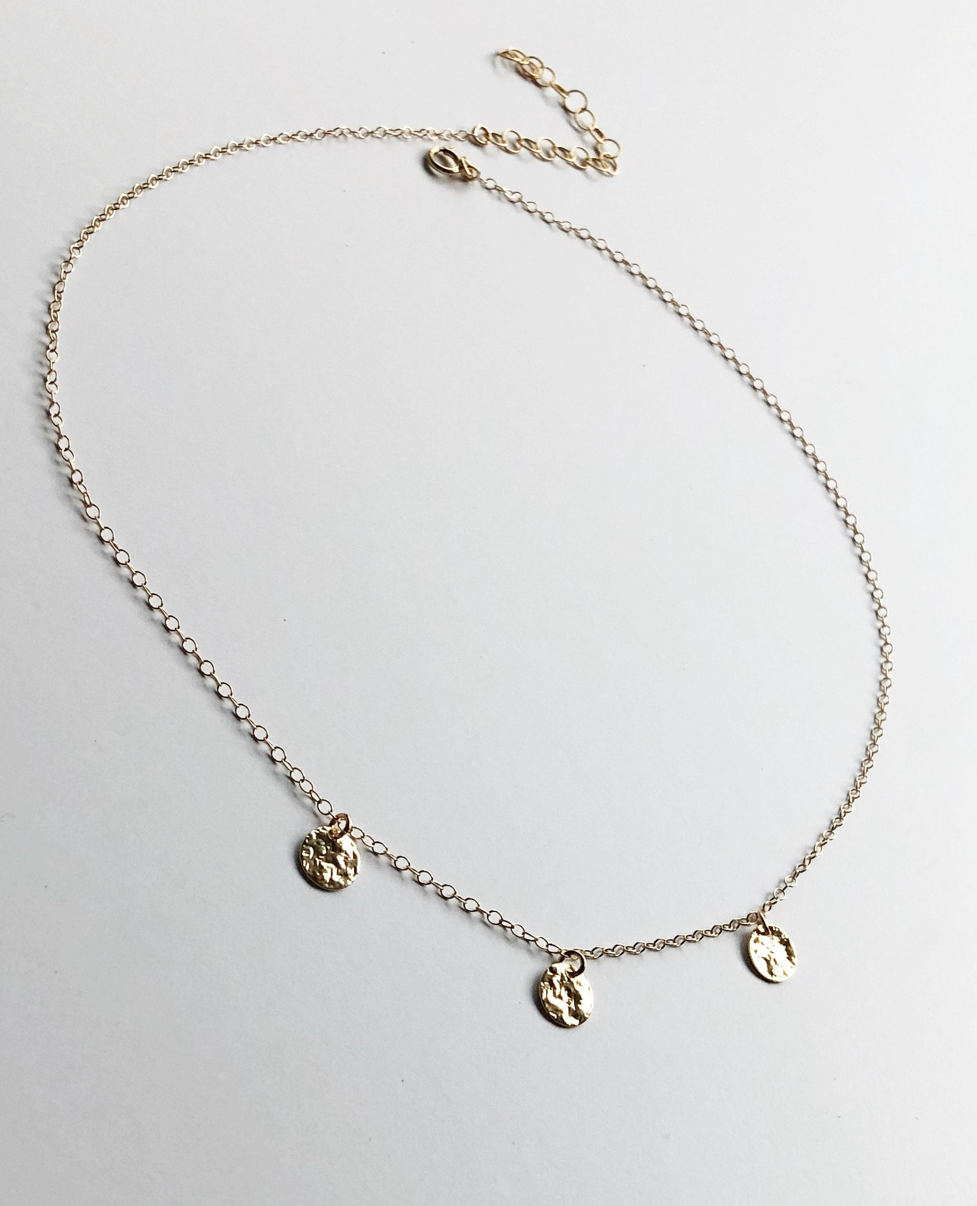 Boho Plättchenkette, Halskette in Gold Filled, Kette mit Gehämmerten Münz Anzänger