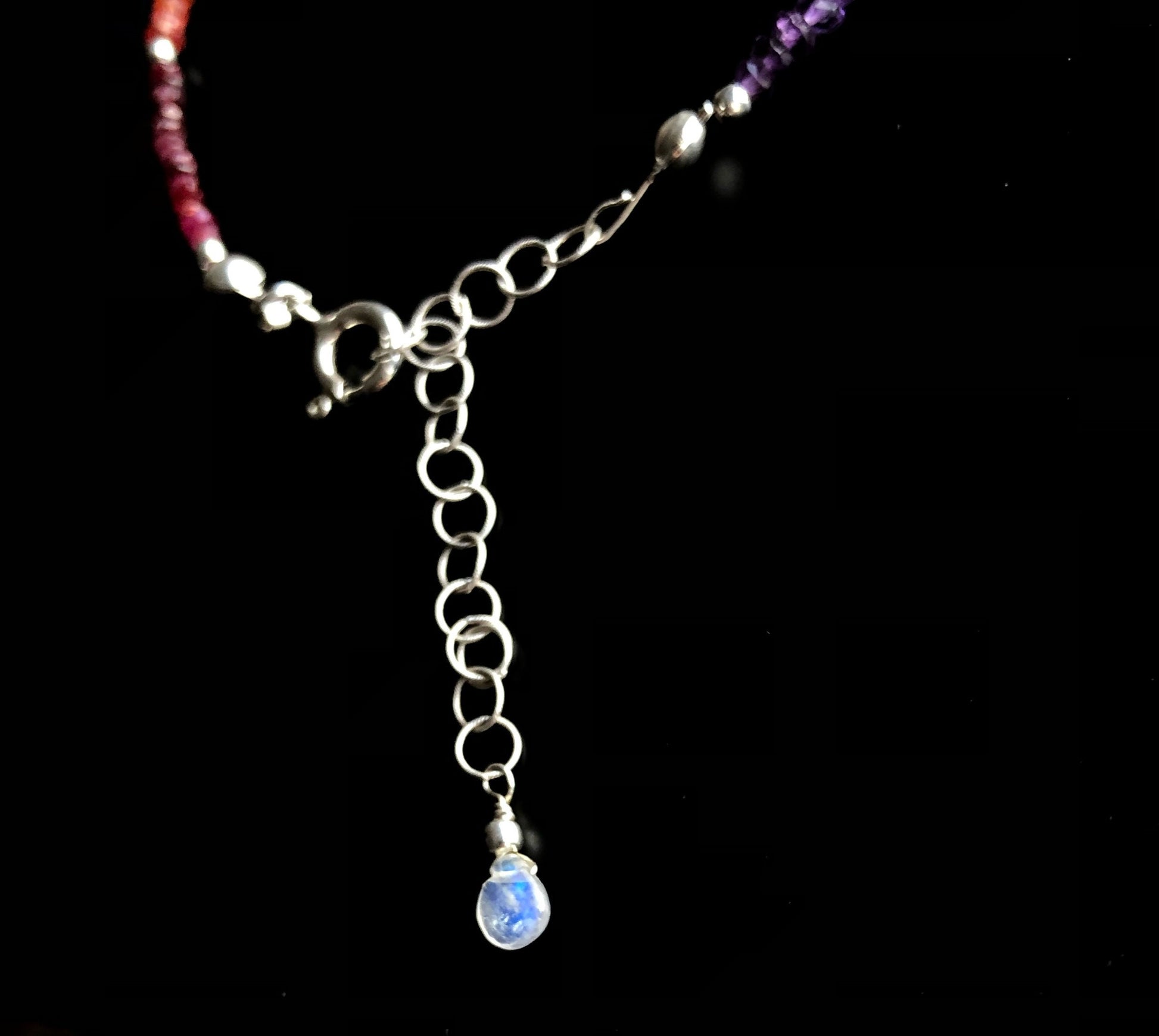 Chakra Regenbogen Armband mit Farbverlauf, Geburtssteine Mondstein, Smaragd Rubin Saphir, Schmuck Geschenke für Frauen
