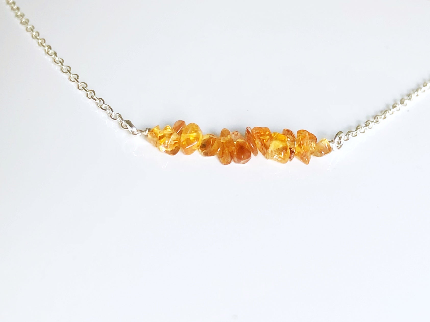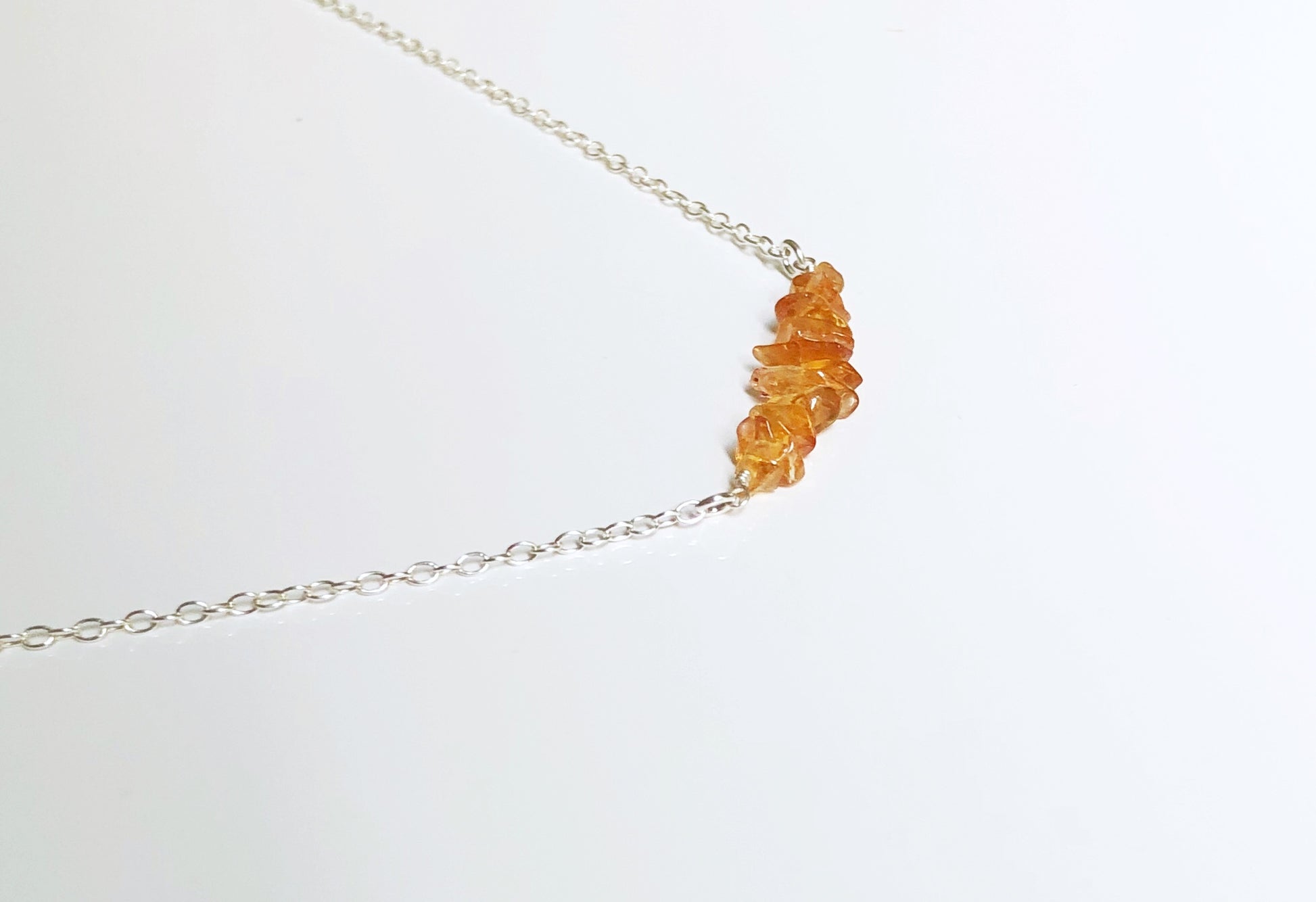 Eine zarte handgemachte Halskette mit natürlichen, unbehandelten und nicht erhitzten Citrin Edelsteinen.