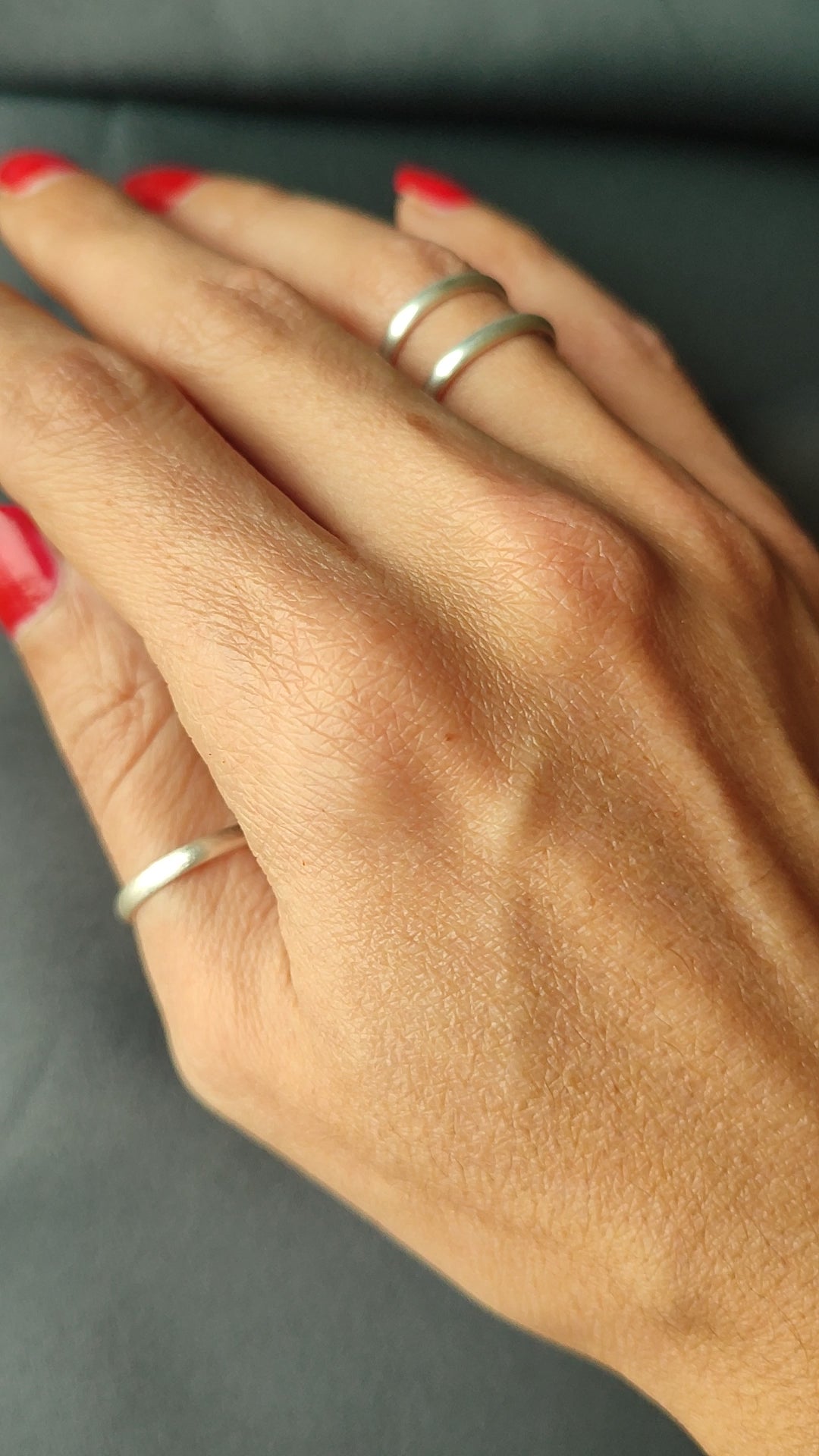 Dieser Ring passt sich bis um zu zwei Größen an und kann dadurch an verschiedenen Fingern getragen werden. Er trägt sich sehr bequem und fällt durch sein außergewöhnliches Design auf und dennoch wirkt er dezent und elegant.