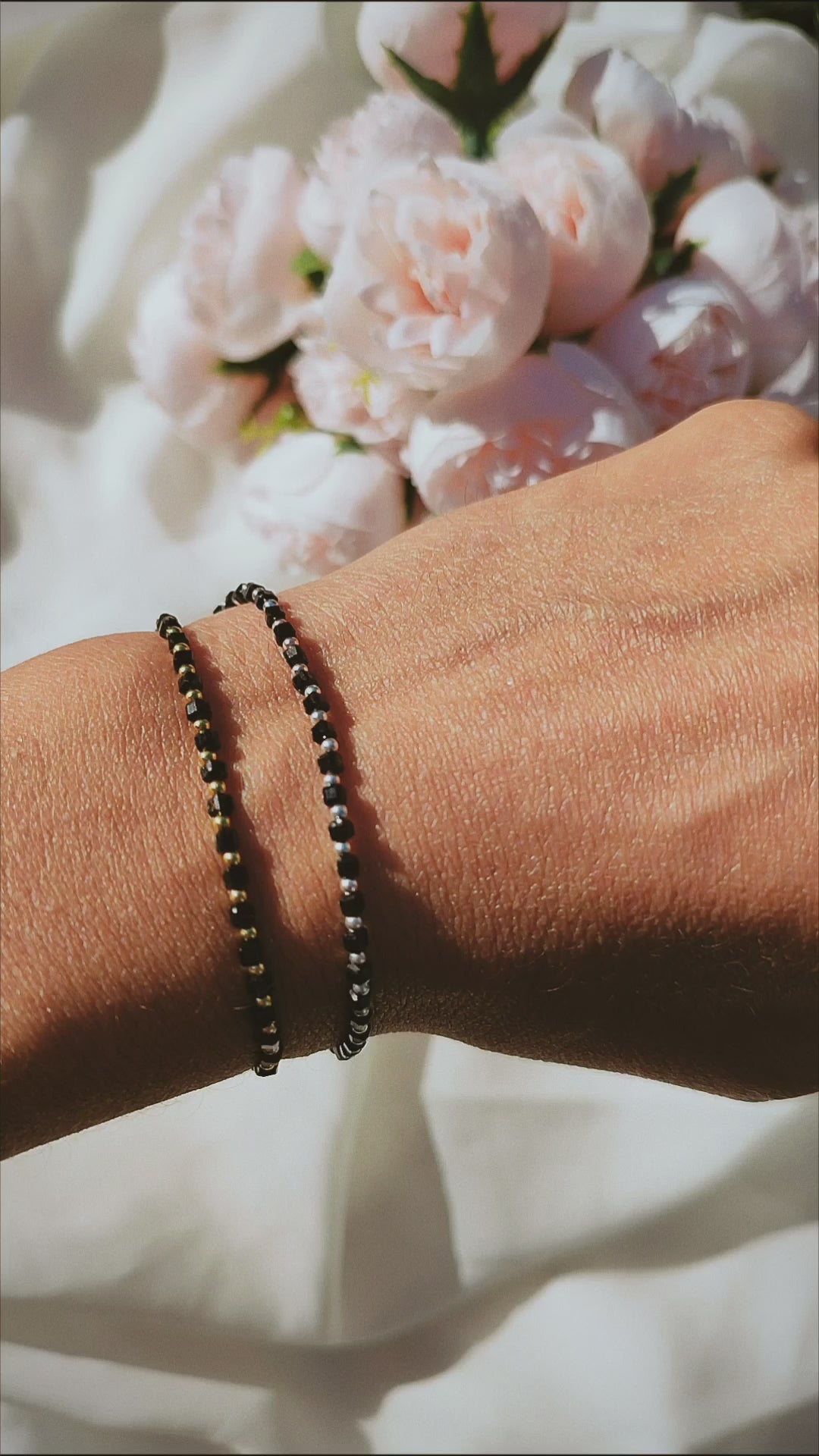 Die schwarzen Turmalin Steinchen sind unbehandelt und in Würfelform. Das elastische Armband ist bequem zu tragen und auch im turbulenten Zeiten robust genug um mit dir mitzuhalten.