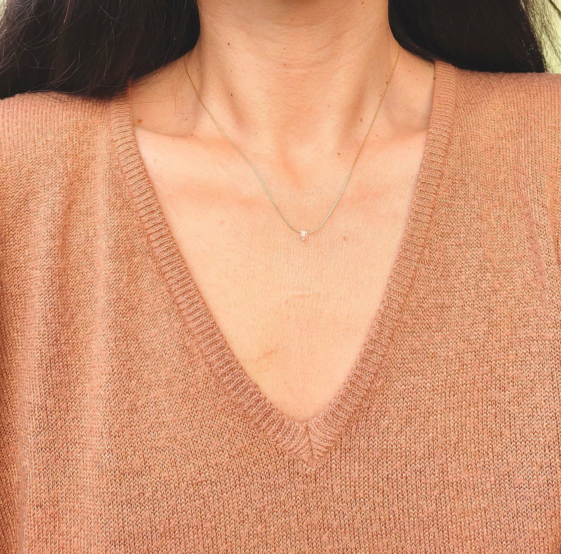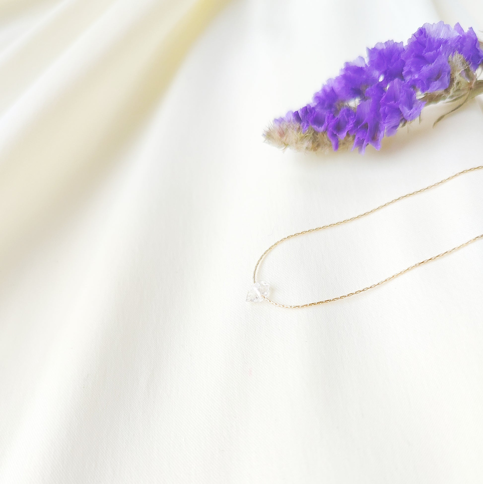Die zarte 0,5 mm starke Halskette mit Herkimer Diamant ist aus 925 Sterling Silber oder 585 vergoldetem Sterling Silber erhältlich. Der 4mm Herkimer Diamant funkelt wunderschön mit jeder Bewegung und wirkt luxuriös und Edel. Die unaufdringliche Halskette passt zu jedem Outfit und wirkt nie zu überladen.