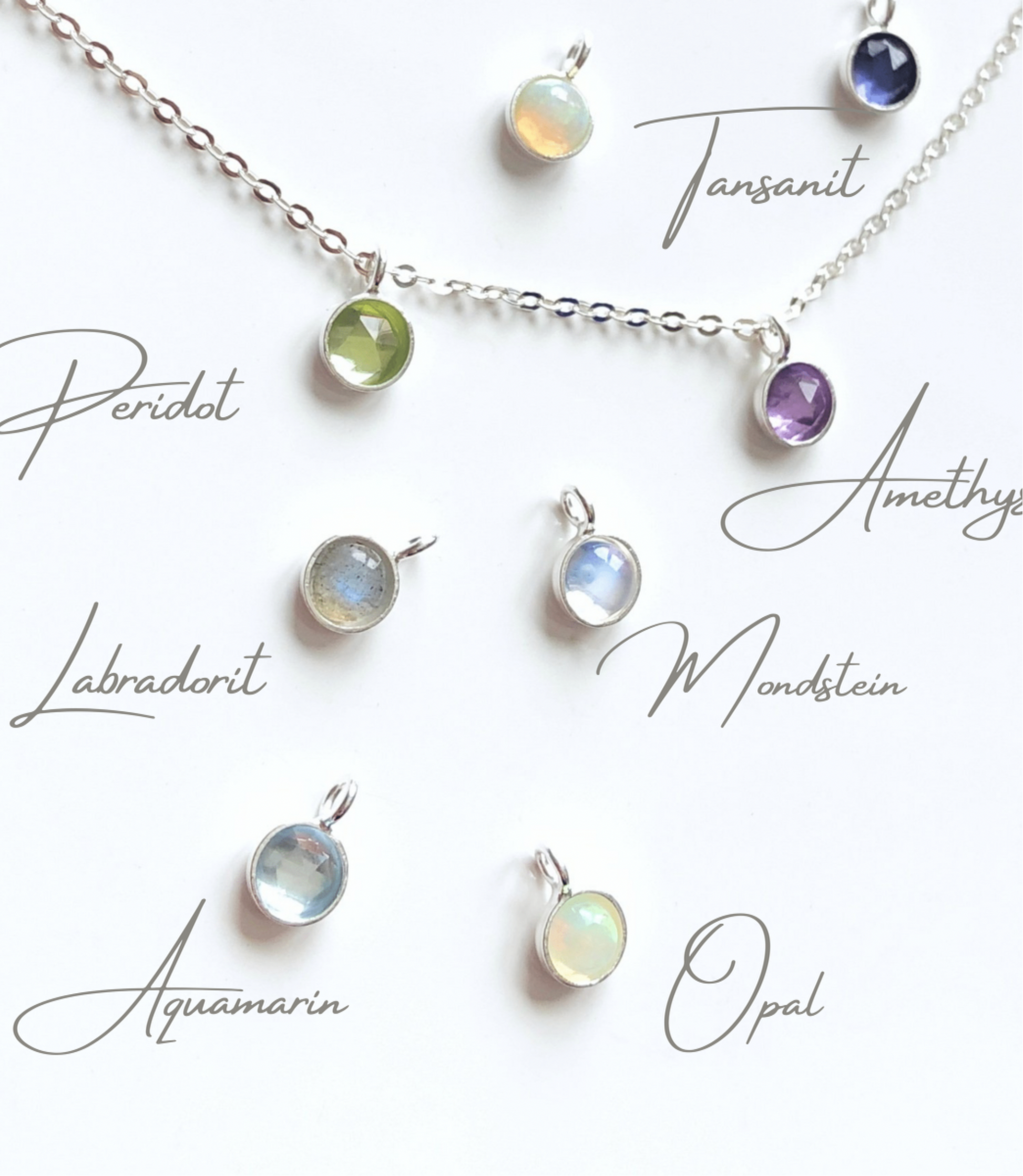 Mini Geburtsstein Anhänger aus 925 Sterling Silber