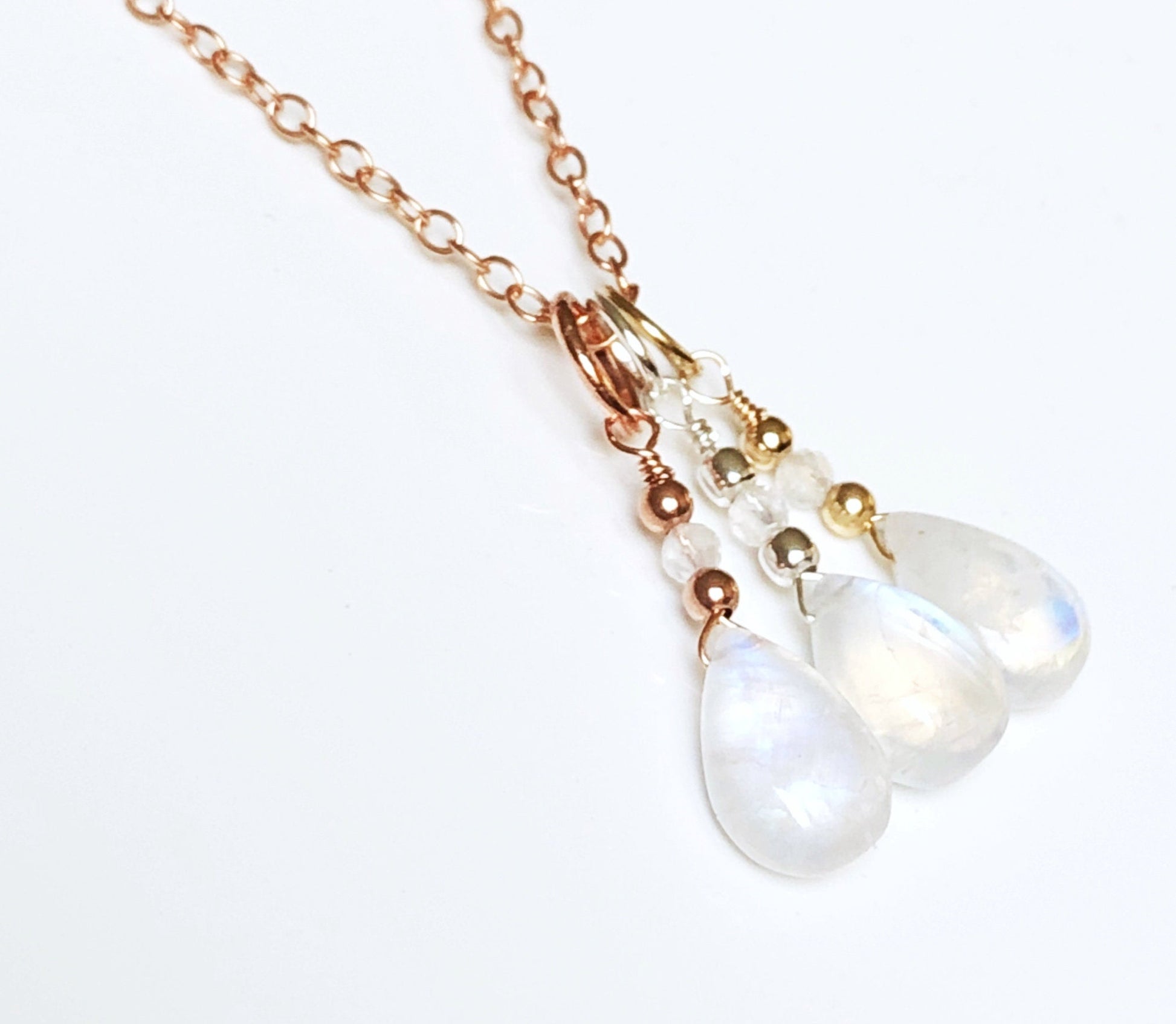Mini Regenbogen Mondstein Anhänger für Kette, 925 Sterling Silber, Goldfill, Rosègold Filled, Juni Geburtsstein Schmuck