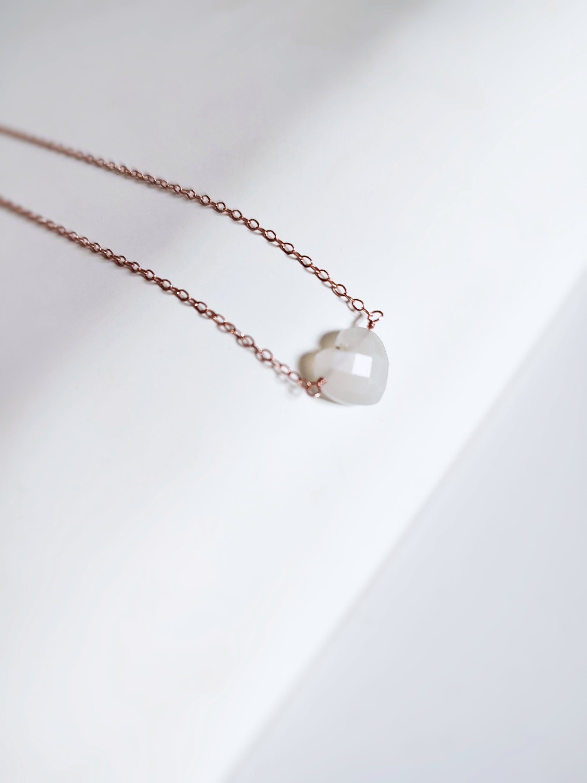 In einer limitierten Auflage haben wir diese wunderschöne Mondstein Halskette für euch hergestellt. Der strahlende weiße Mondstein hat eine Größe von 10 mm und wurde aufwändig in Herzform per Hand geschliffen.