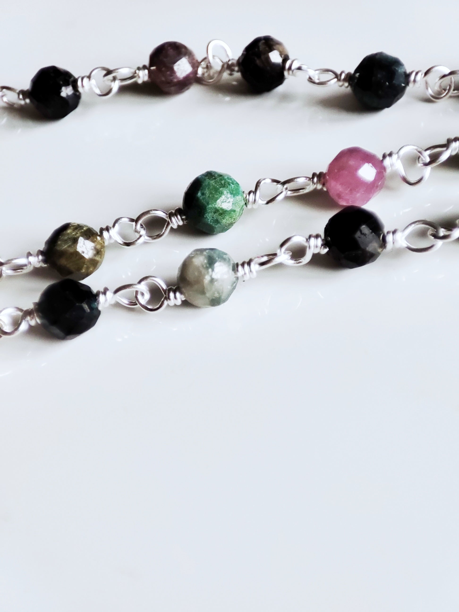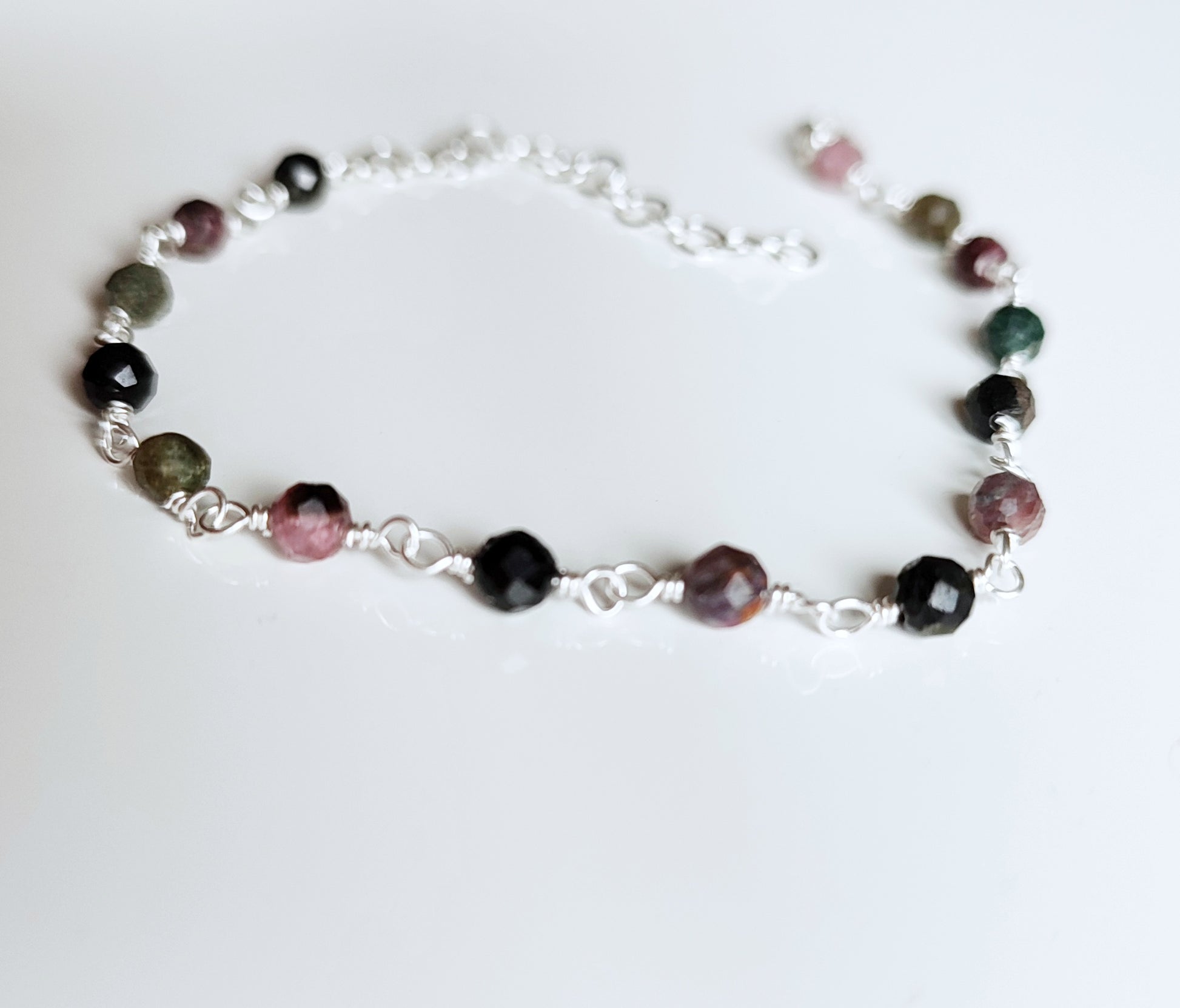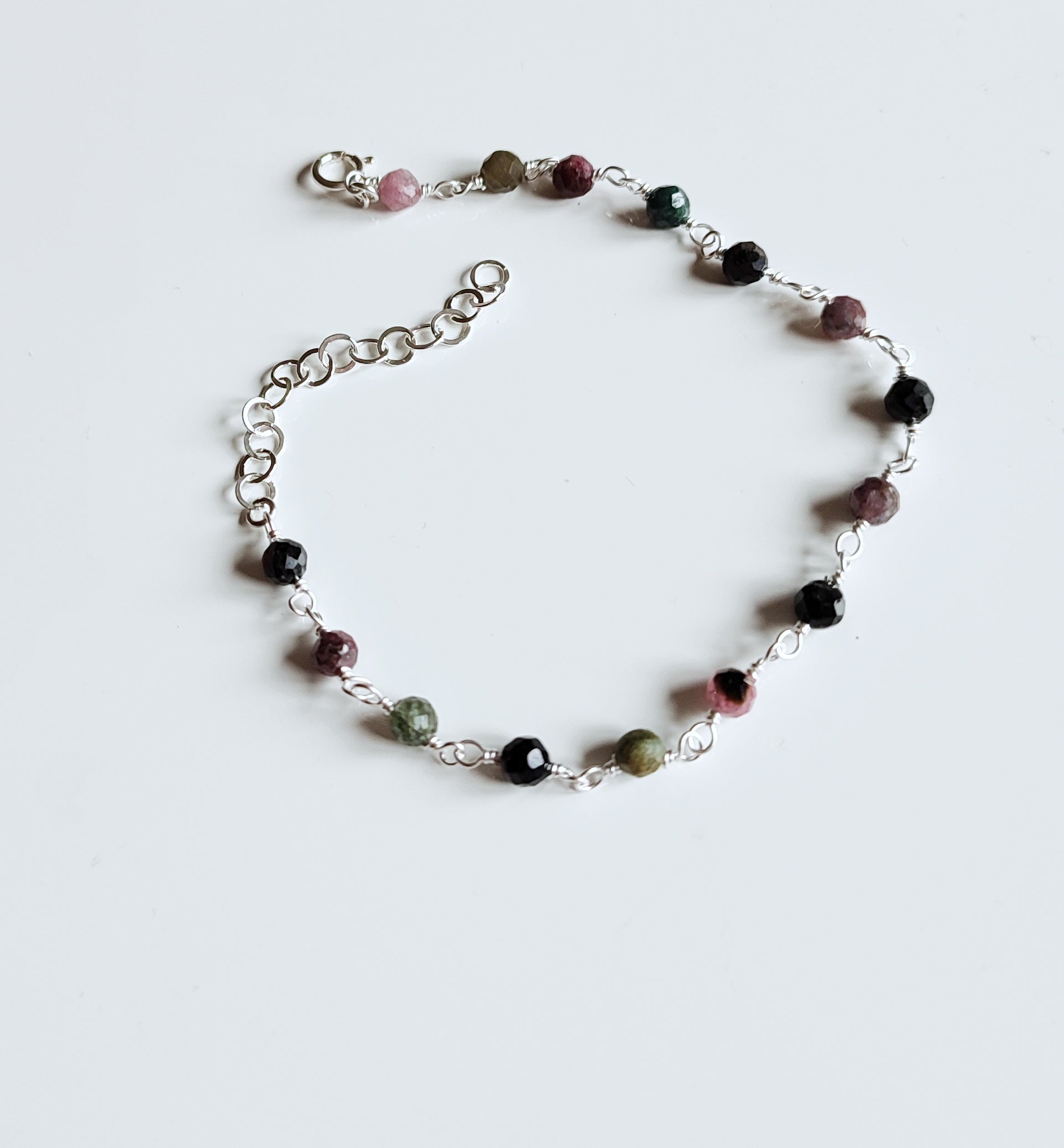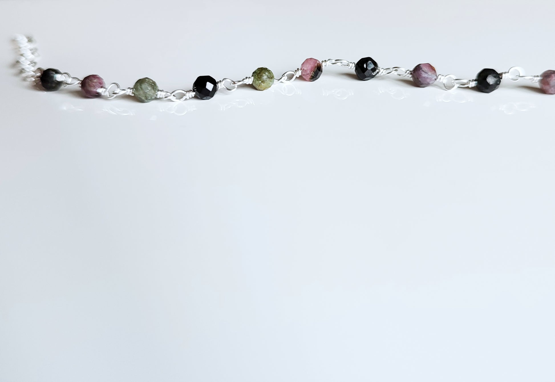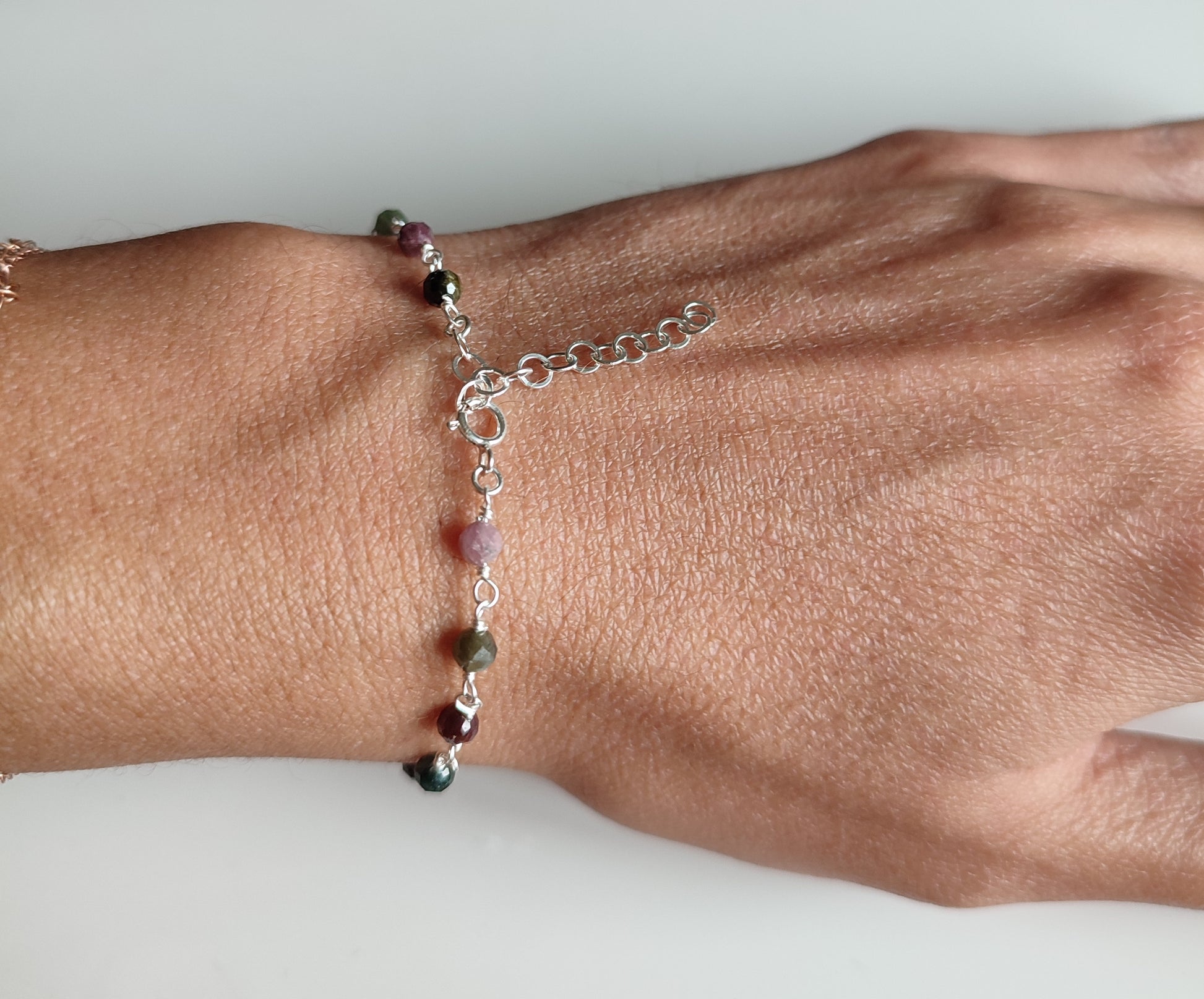 Hier haben wir ein aufwändig in Handarbeit gemachtes Armband mit 3mm kleinen Turmalin Steinchen für Dich.
