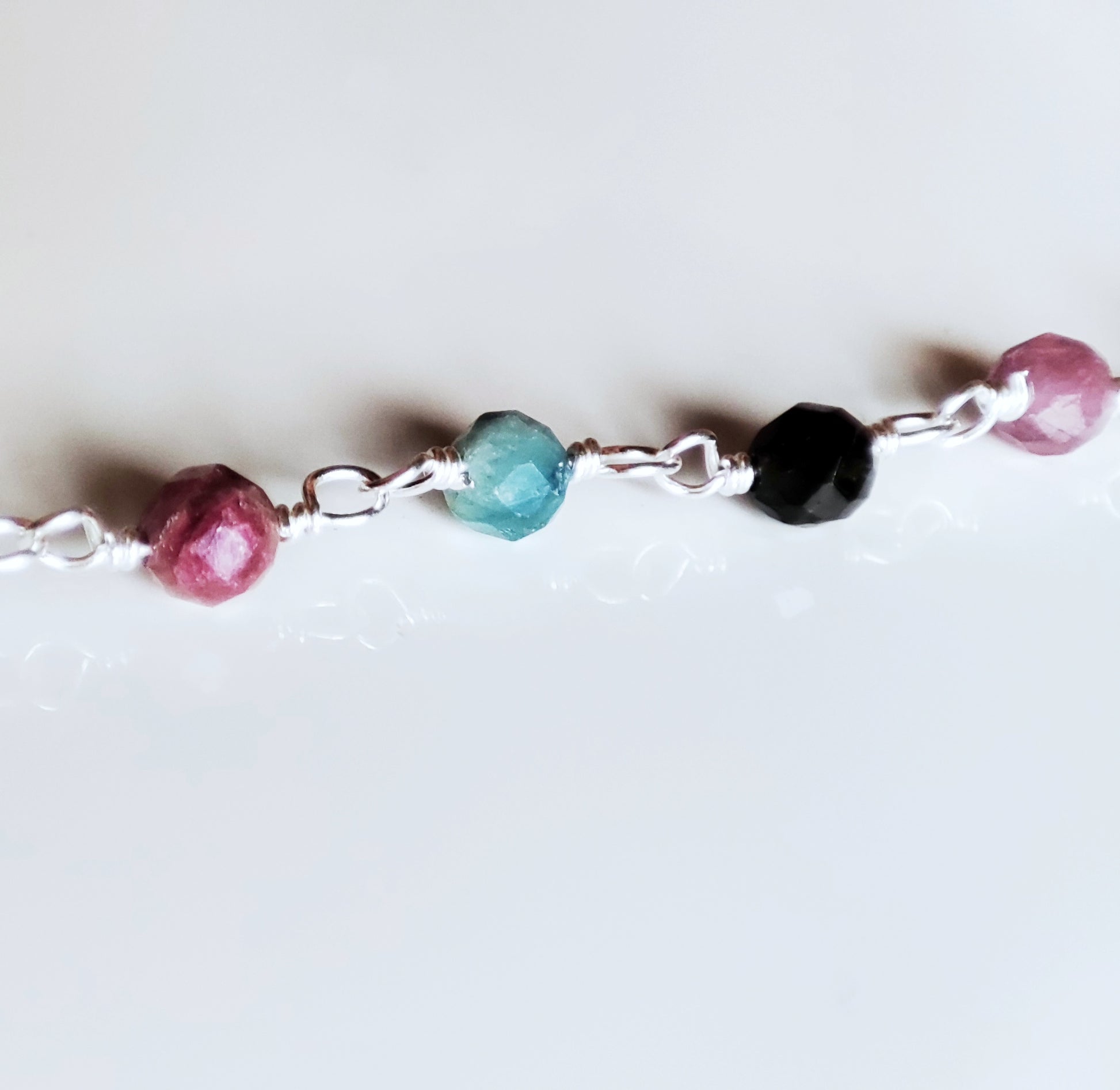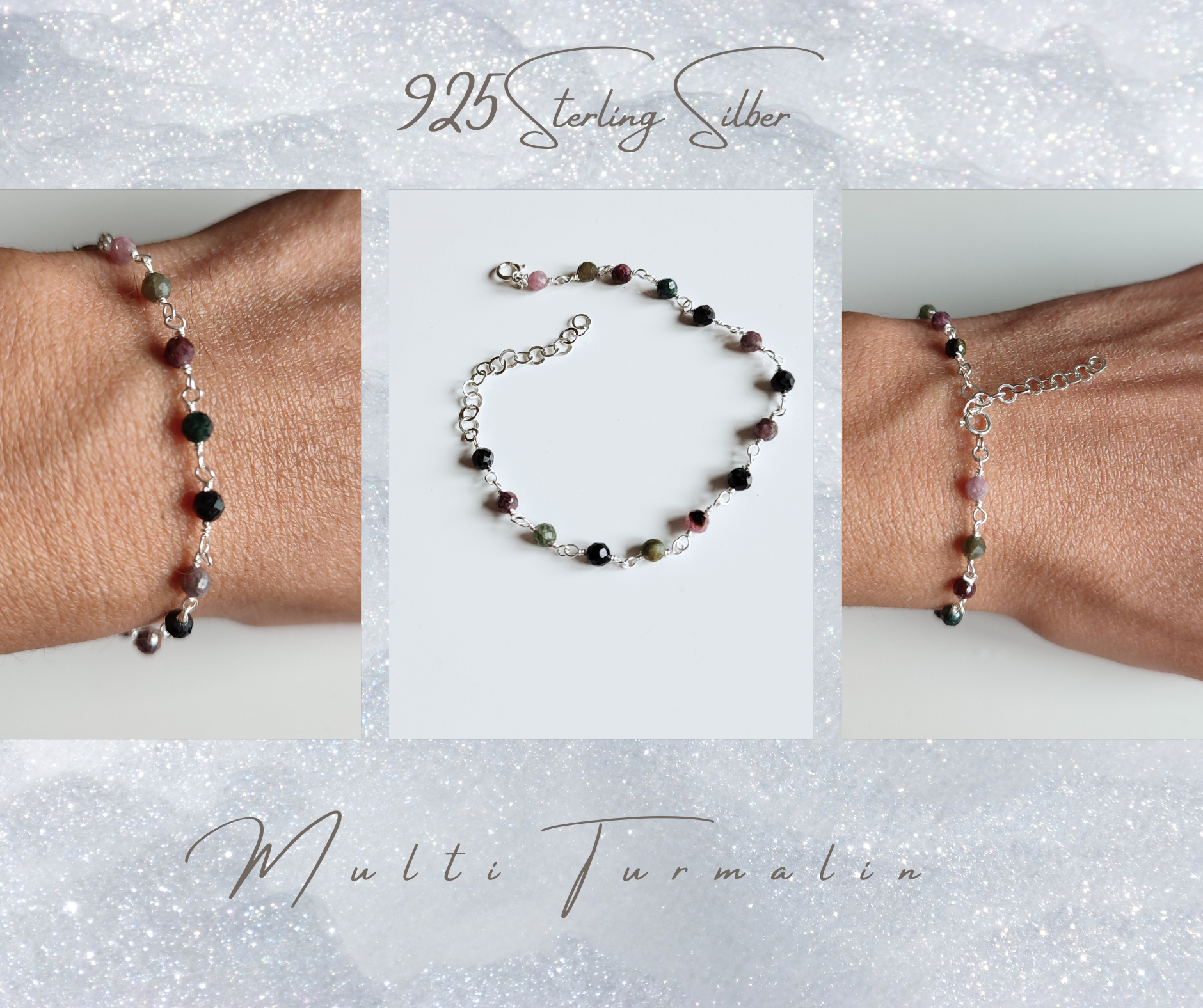 Multi Turmalin Armband, 925 Sterling Silber Armband mit bunten Turmalin Steinen