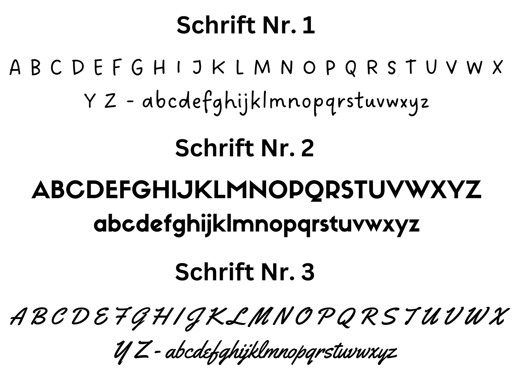 Sende uns im Chat (siehe letztes Bild) eine Nachricht mit der Nummer der Schriftart und dem Geburtsmonat. Fertig!