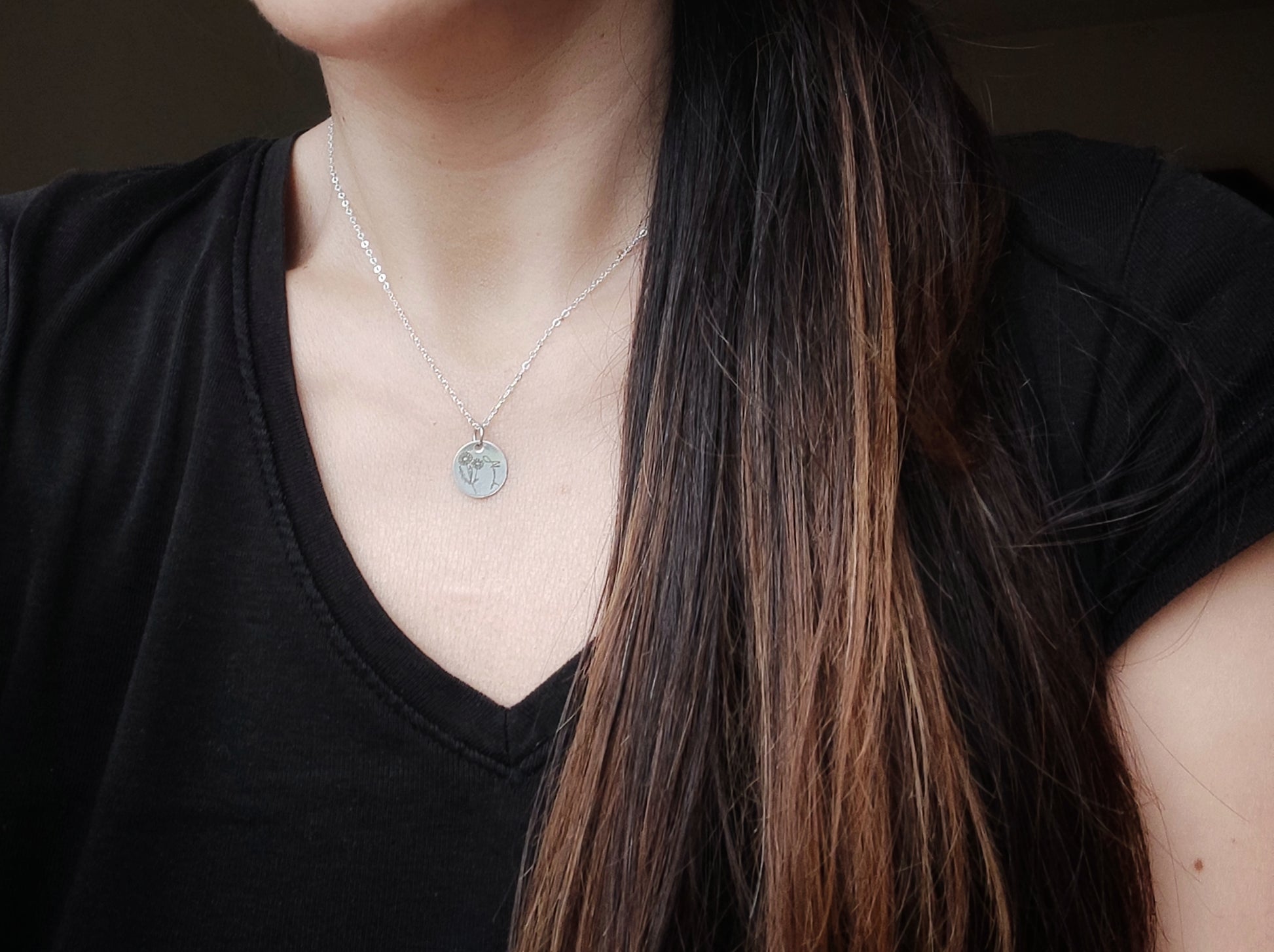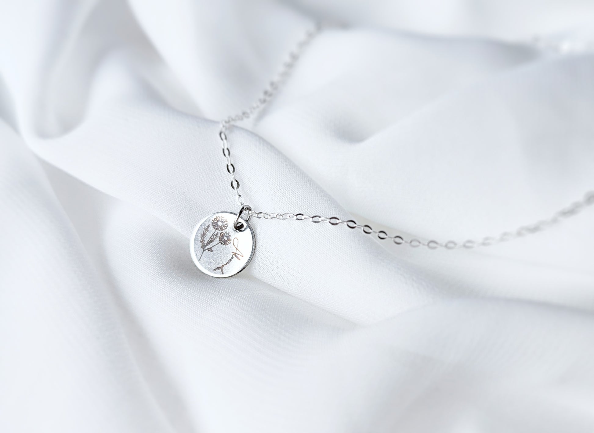 Hier kannst Du dir ganz individuell deine Geburtsblume mit Namen gravieren lassen.