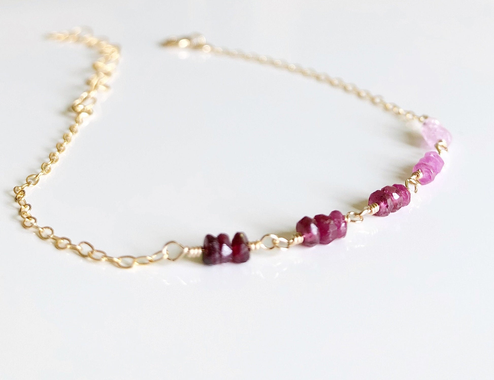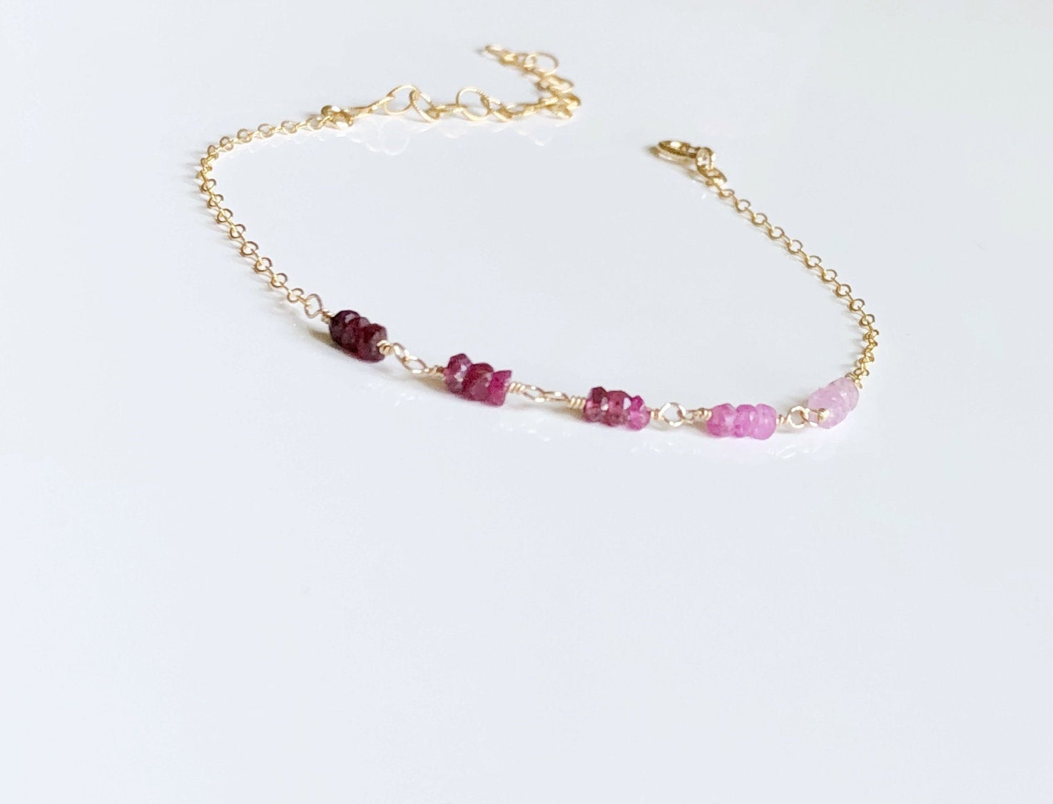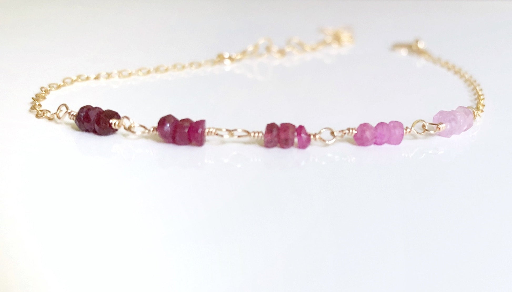 Rubin Armband mit Farbverlauf, Juli Geburtsstein Geschenk, Armband mit Rubin Perlen