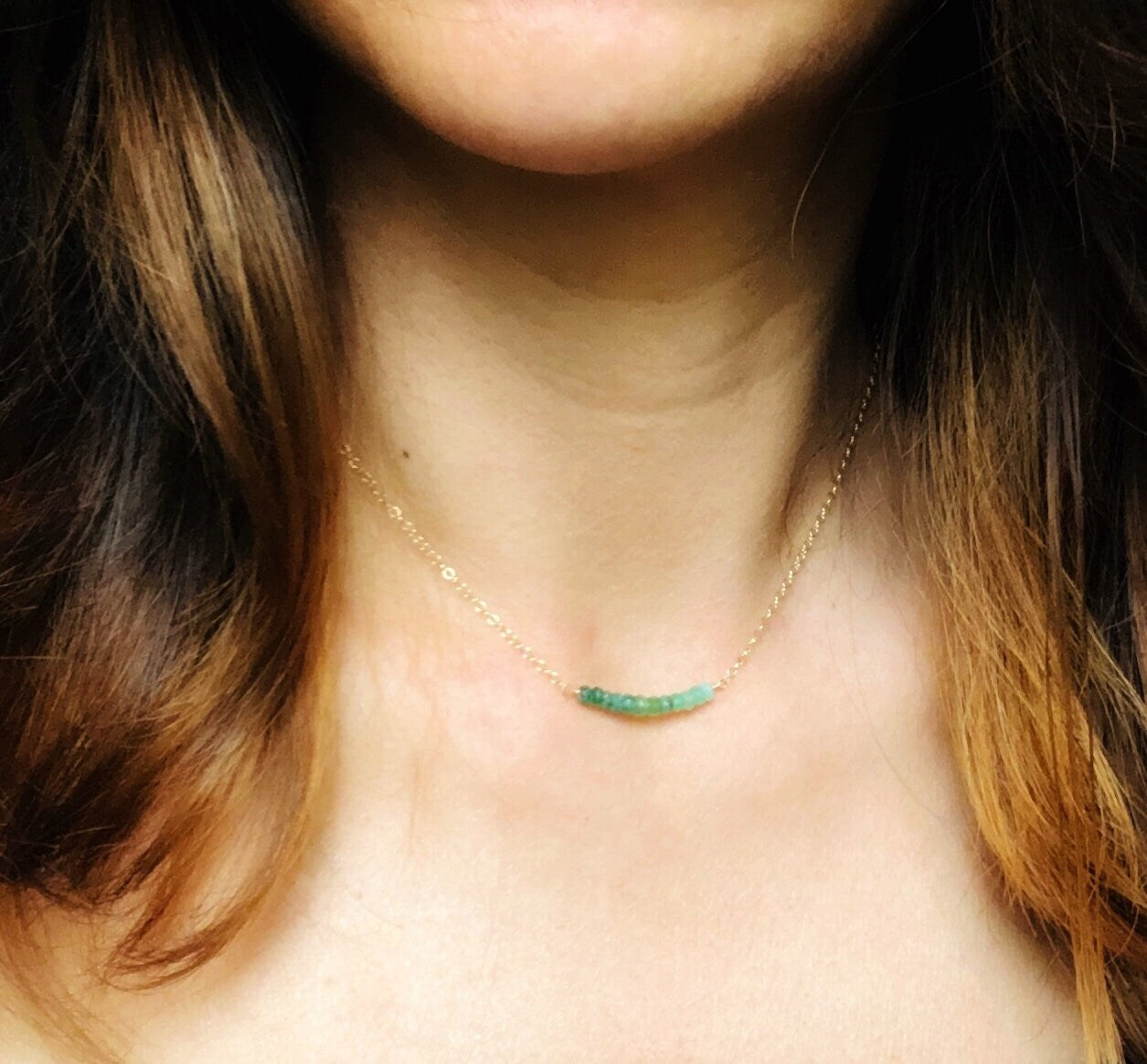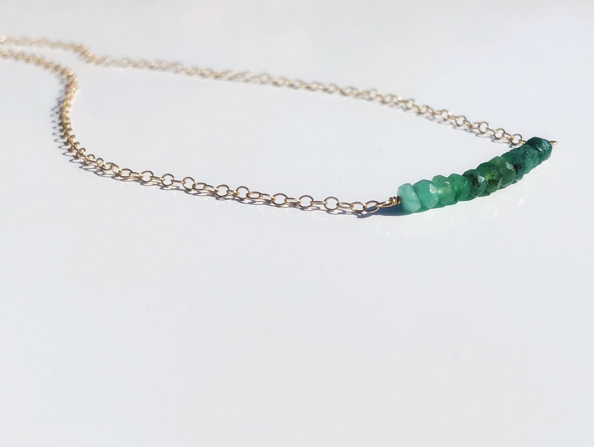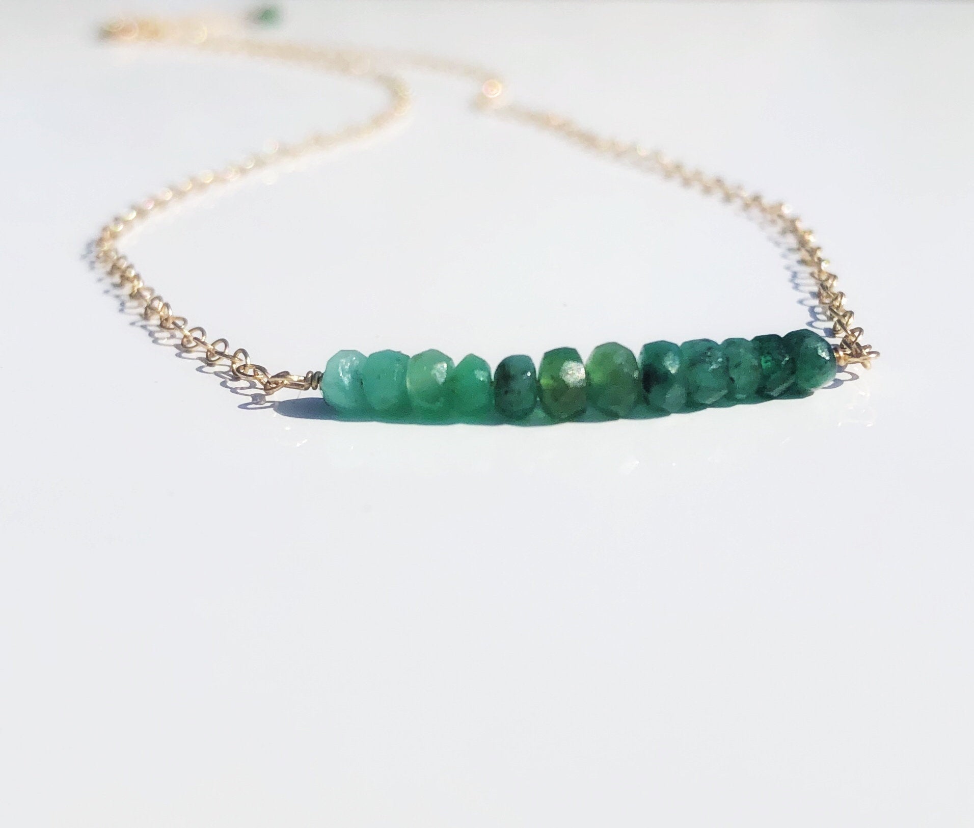 Smaragd Halskette mit Farbverlauf, Mai Geburtsstein, Ombre Smaragdkette