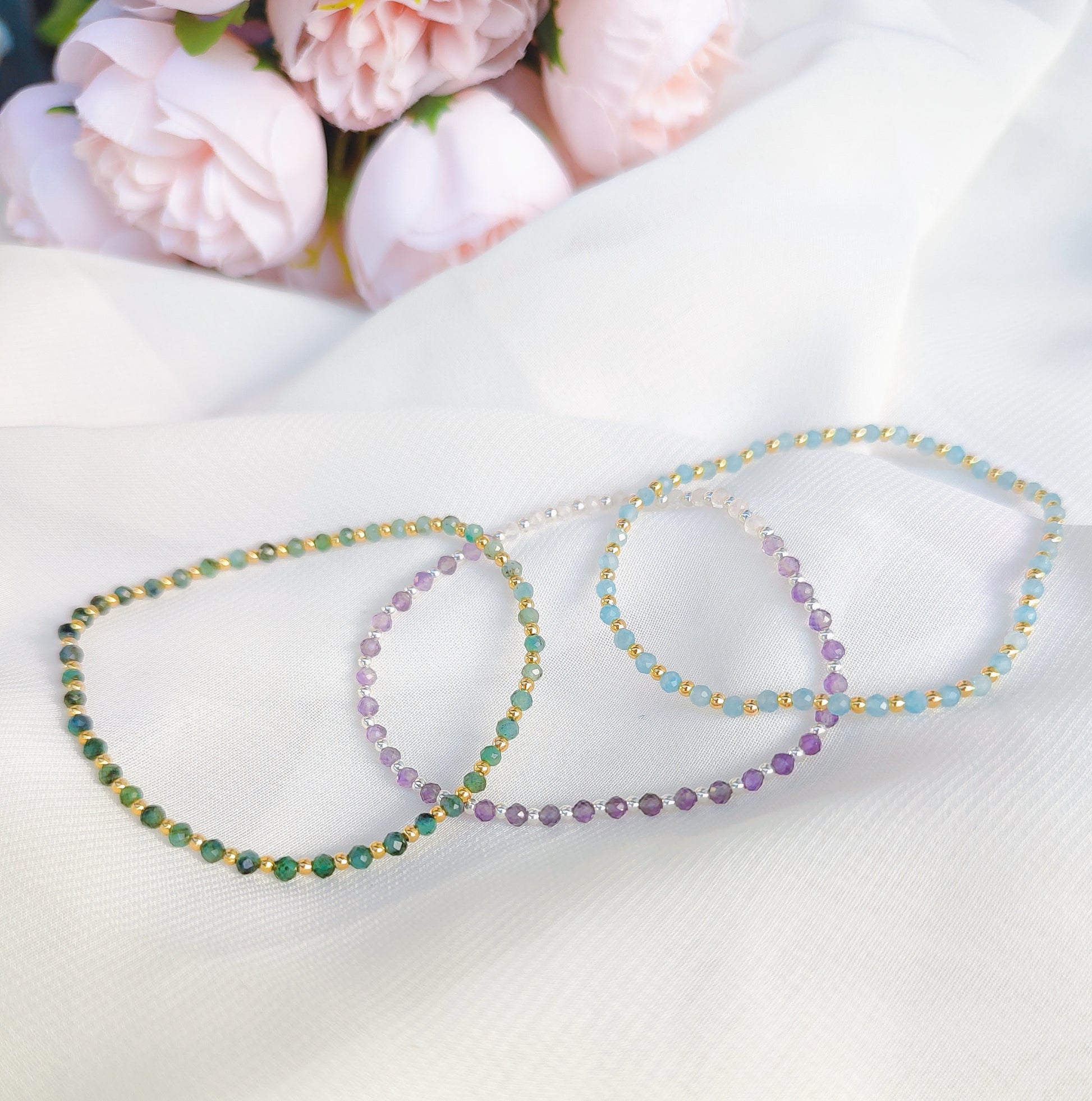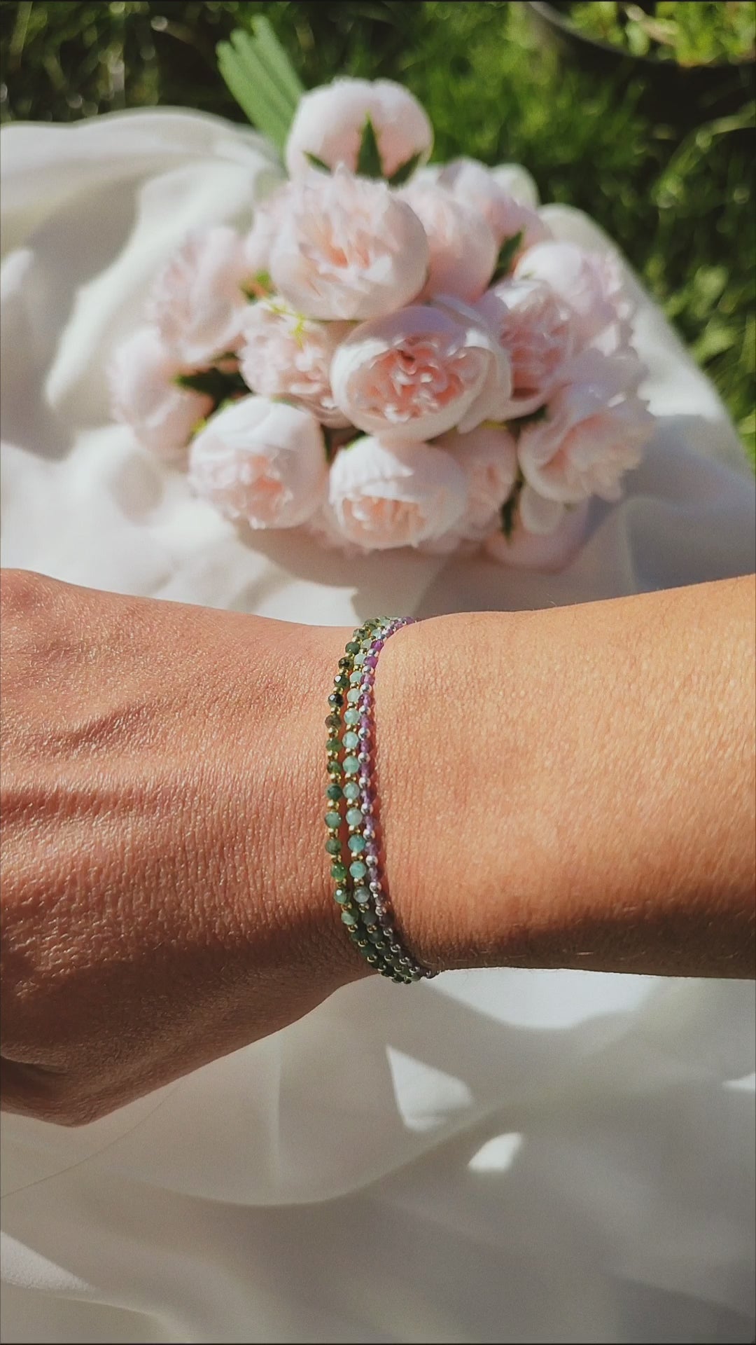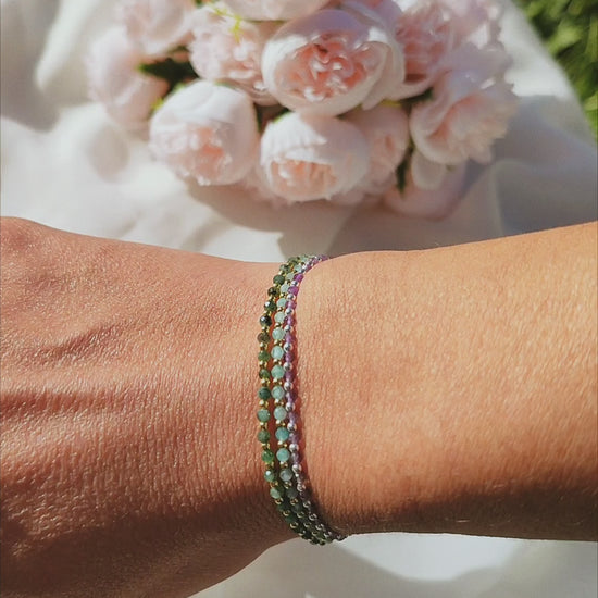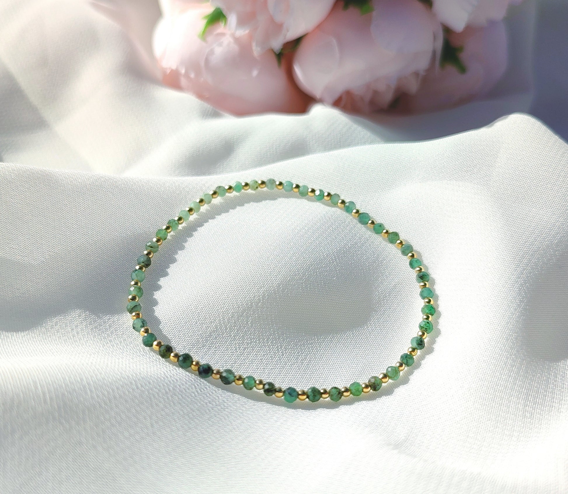 Hier haben wir ein zeitloses Armband mit 2,5 mm kleinen echten Smaragd Perlen.