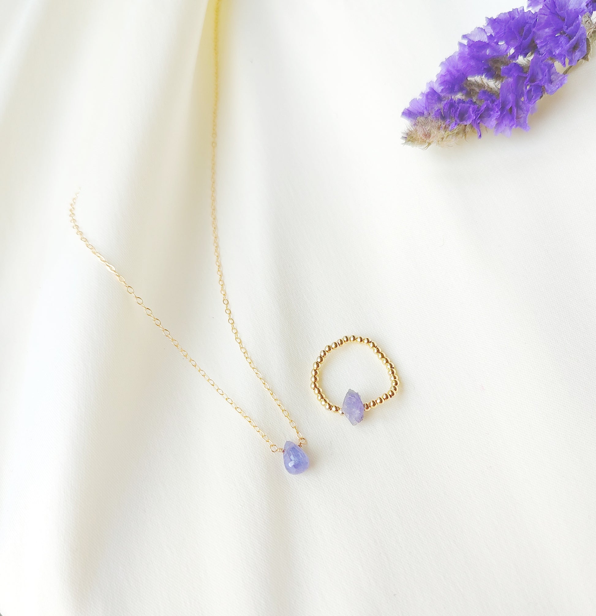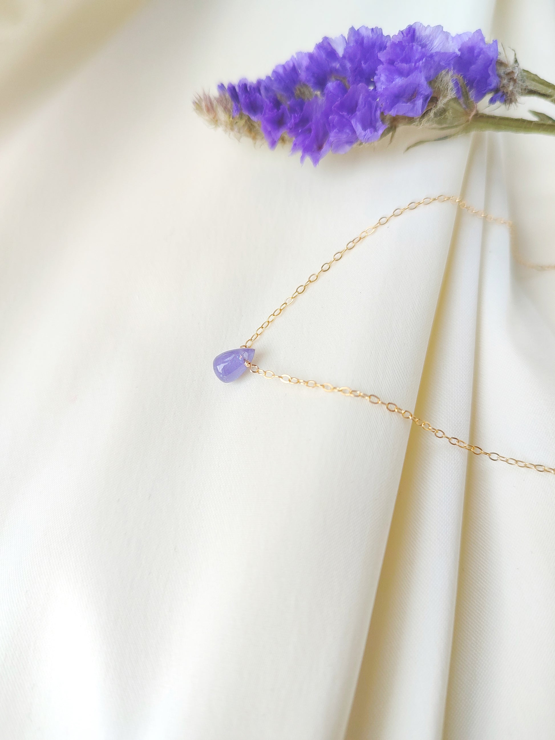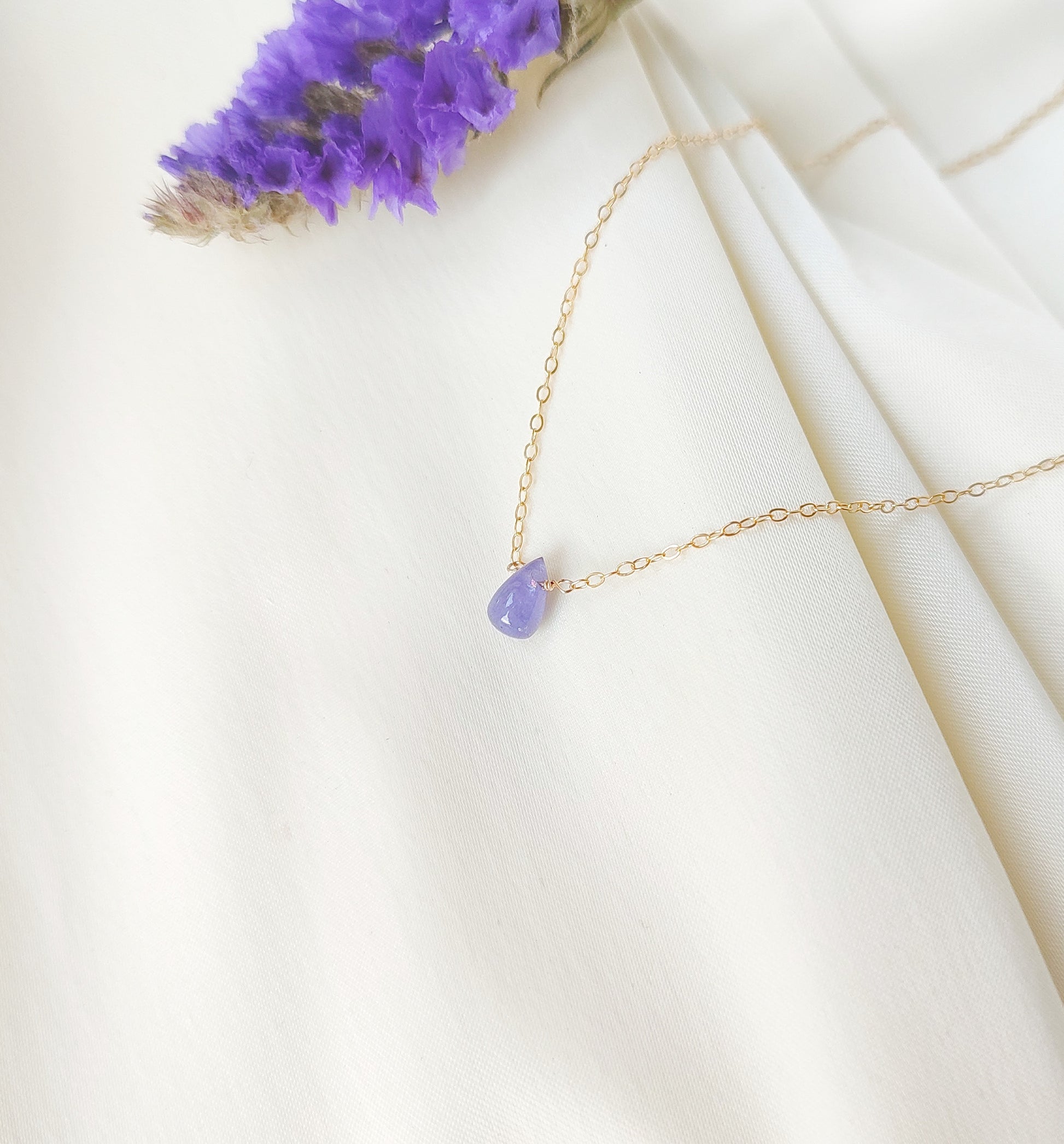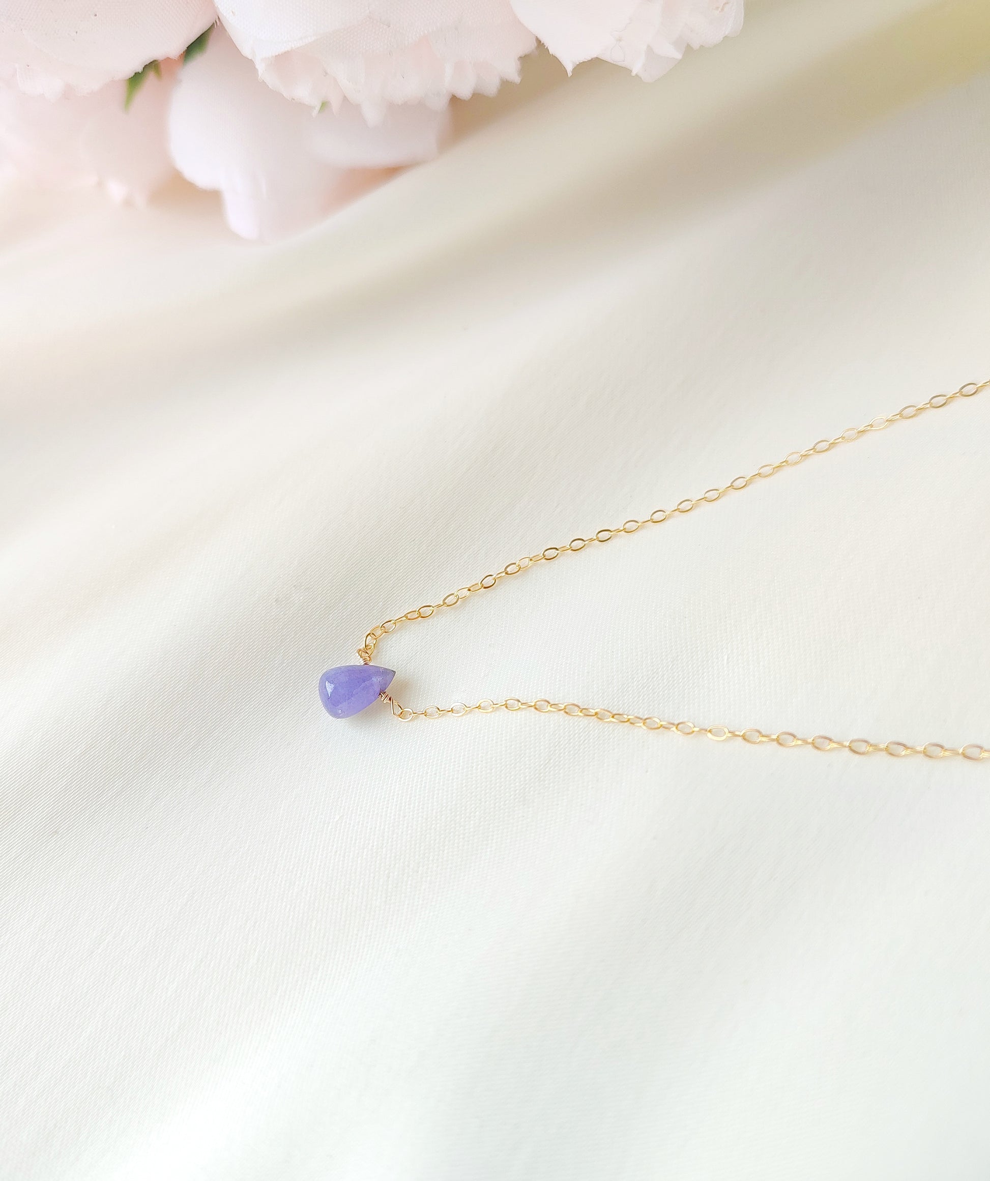 Die zarte Tansanit Halskette ist wahlweise aus 925 Sterling Silber, Gold Filled oder Roségold Filled gefertigt.