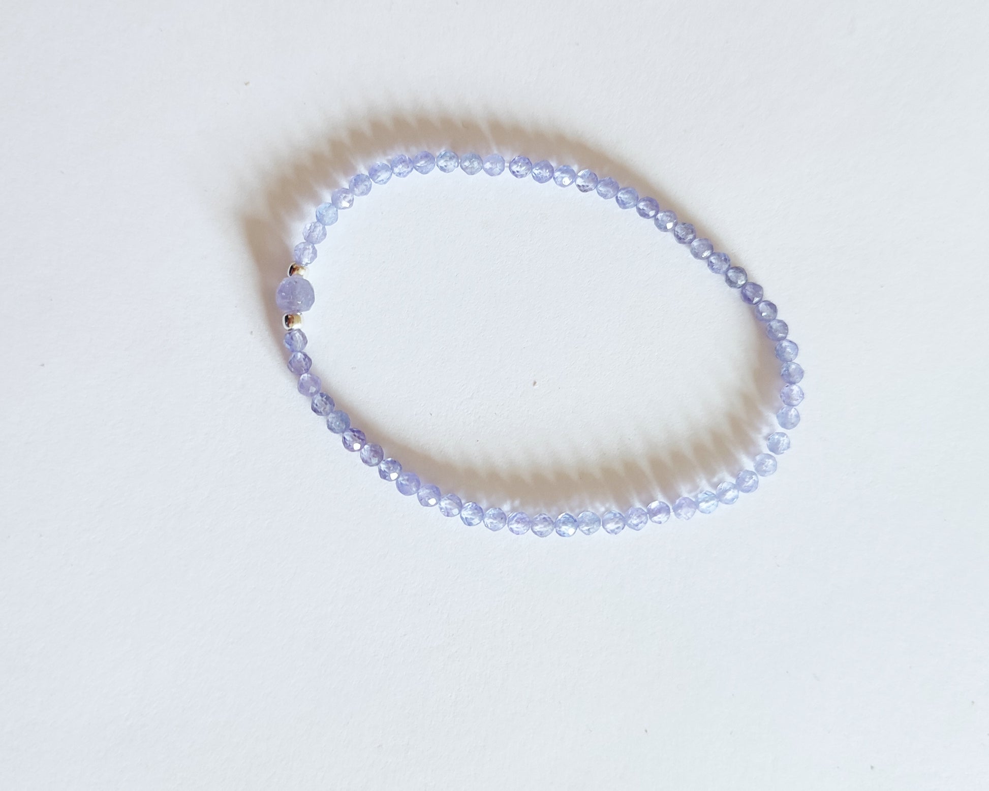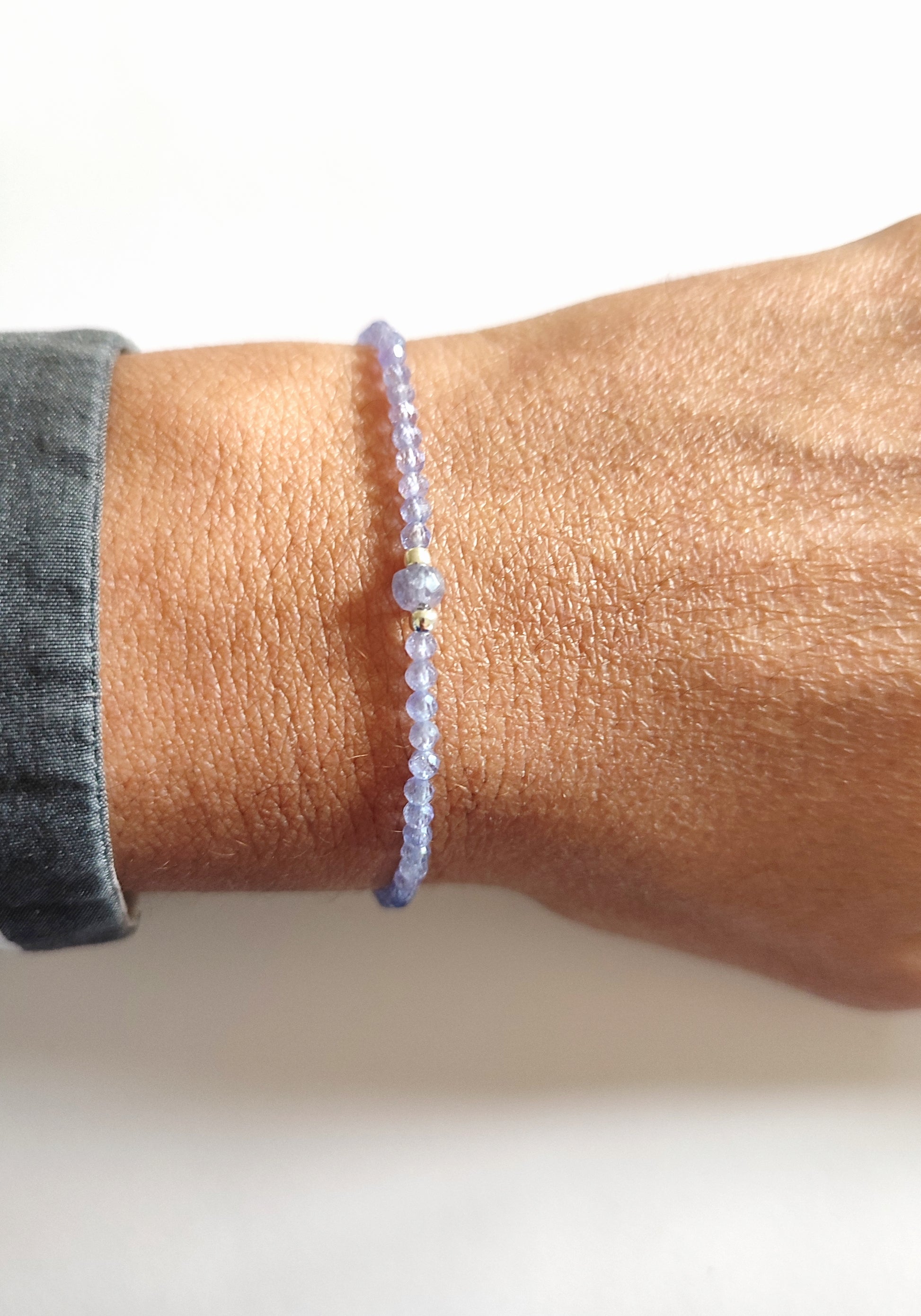 Elastisches Armband mit echten Tansanit Perlen.
