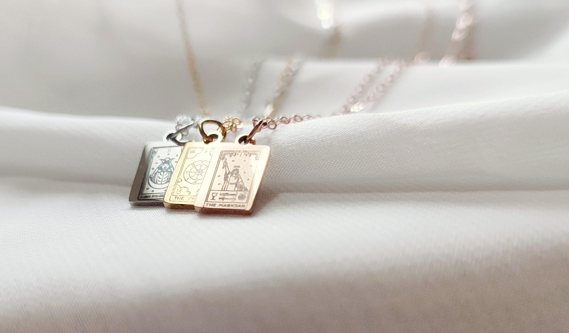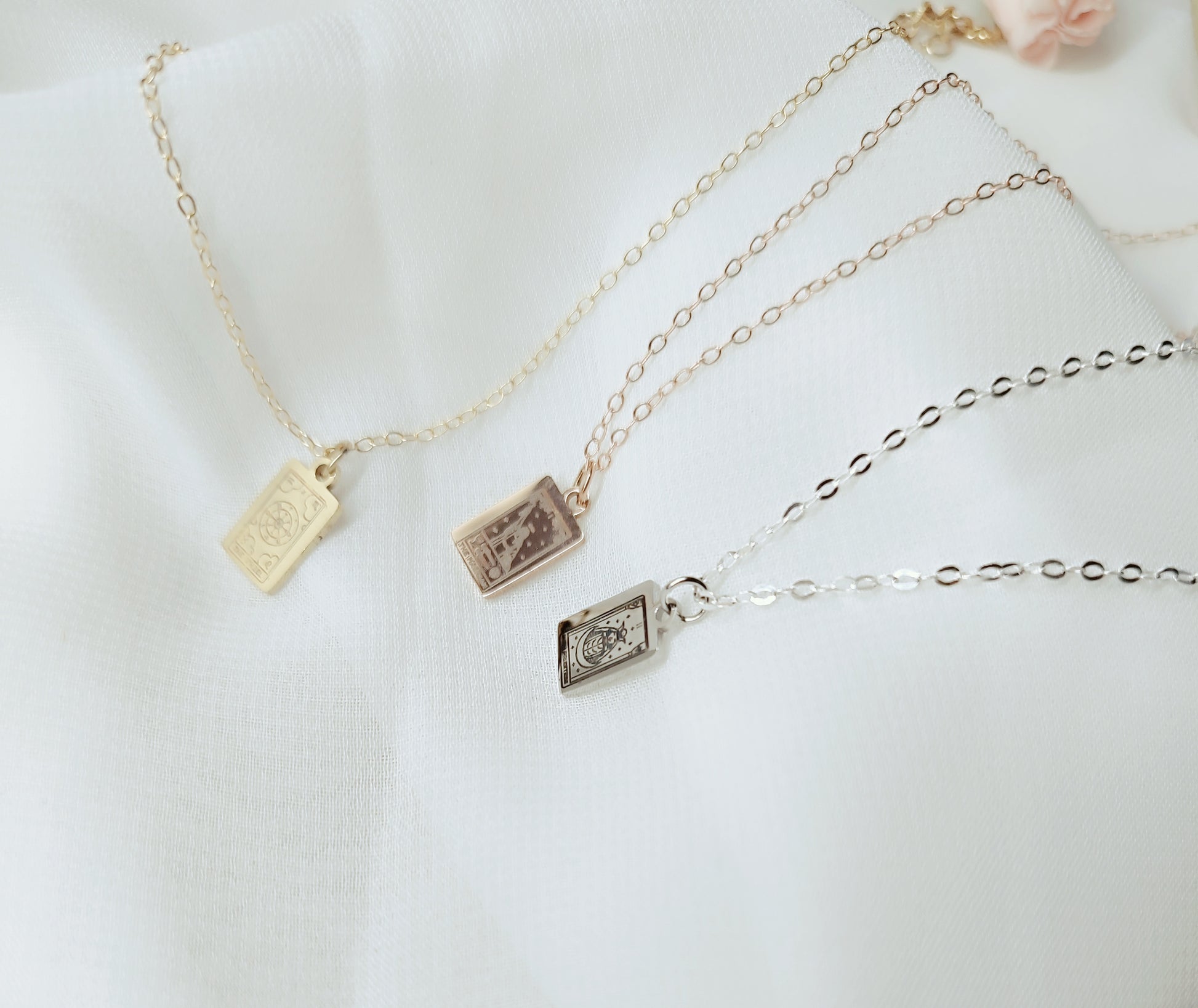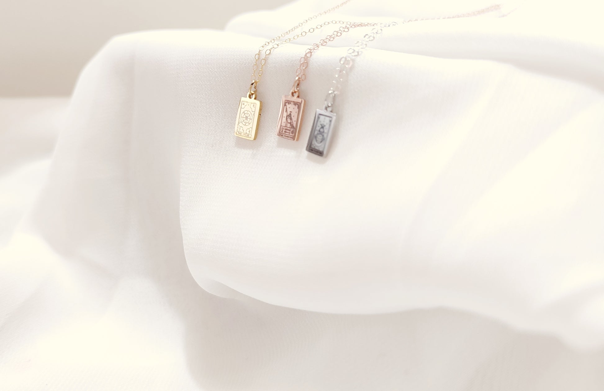 Tarot Halskette, personalisierte Kette mit Tarotkarte in Gold, Roségold und Silber, Mini Tarotkarten Anhänger