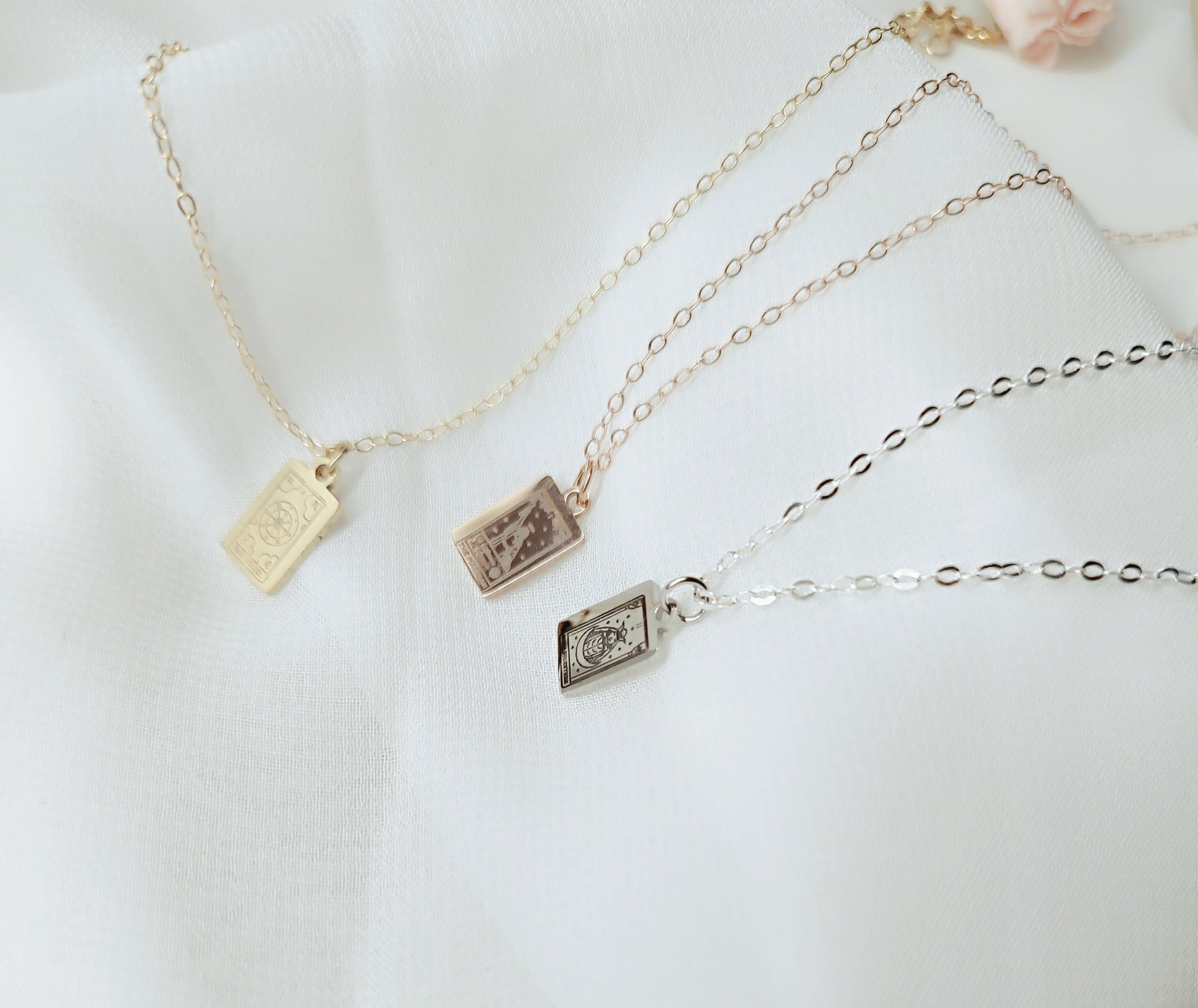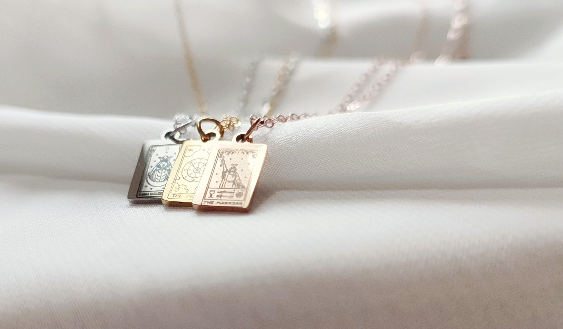 Tarotkarten Anhänger, personalisierte Tarotkarte in Gold, Roségold und Silber