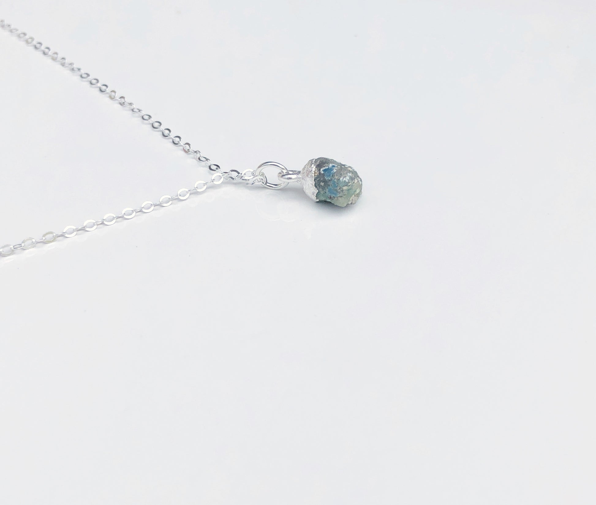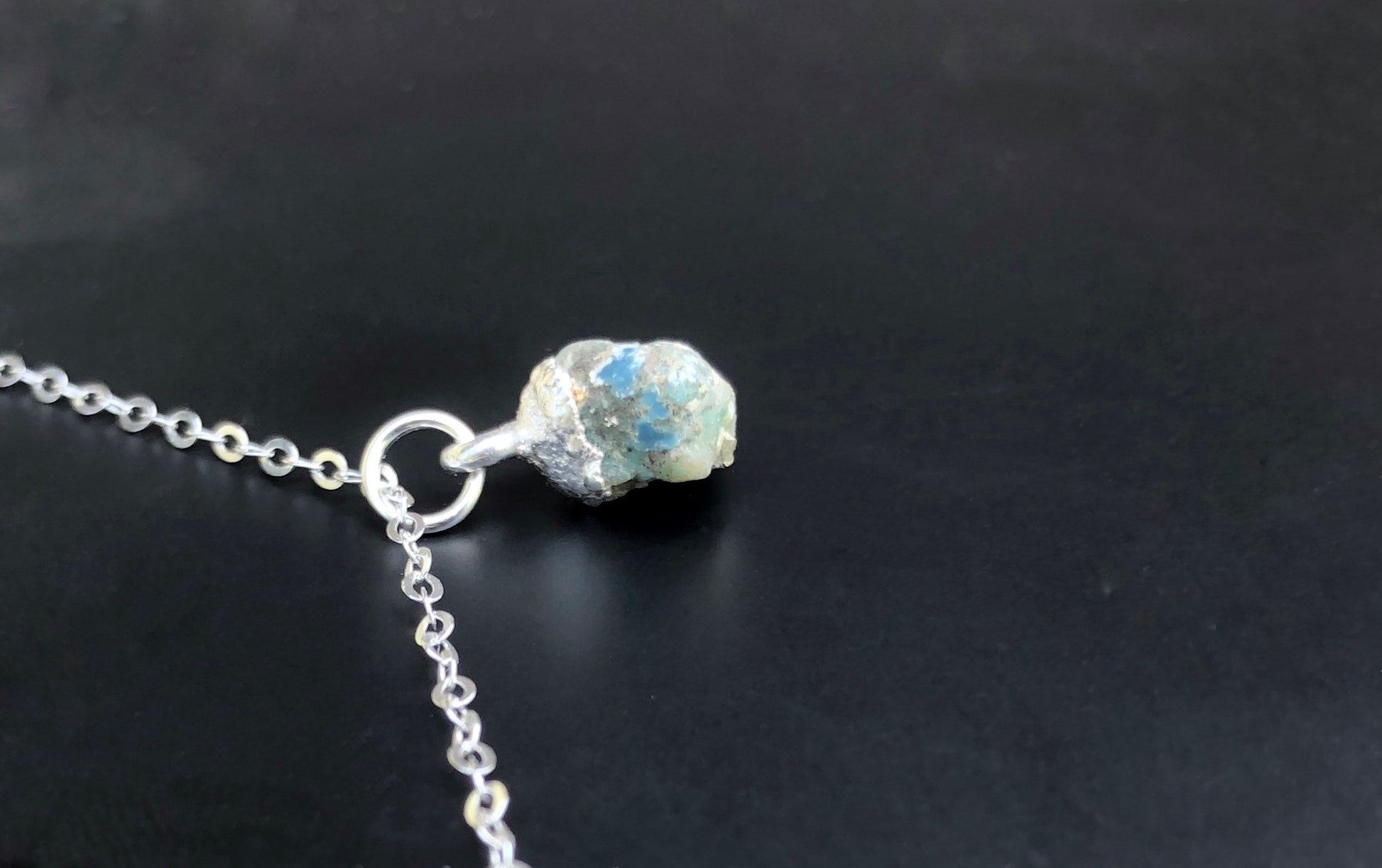 Hier haben wir einen kleinen Anhänger mit einem Türkis Rohstein in einer Fassung aus 925 Sterling Silber.