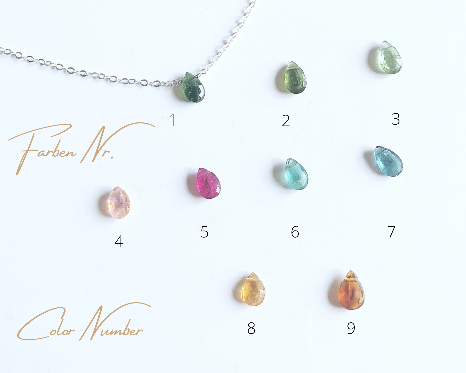 Jeder der kleinen Turmaline hat einen eigenen Charakter und eine wunderschöne Farbe. Die minimalistische Tropfenkette kann sowohl im Alltag, als auch kombiniert mit anderen Halsketten getragen werden. Ob im Büro, am Strand oder bei besonderen Anlässen, diese Kette passt immer!