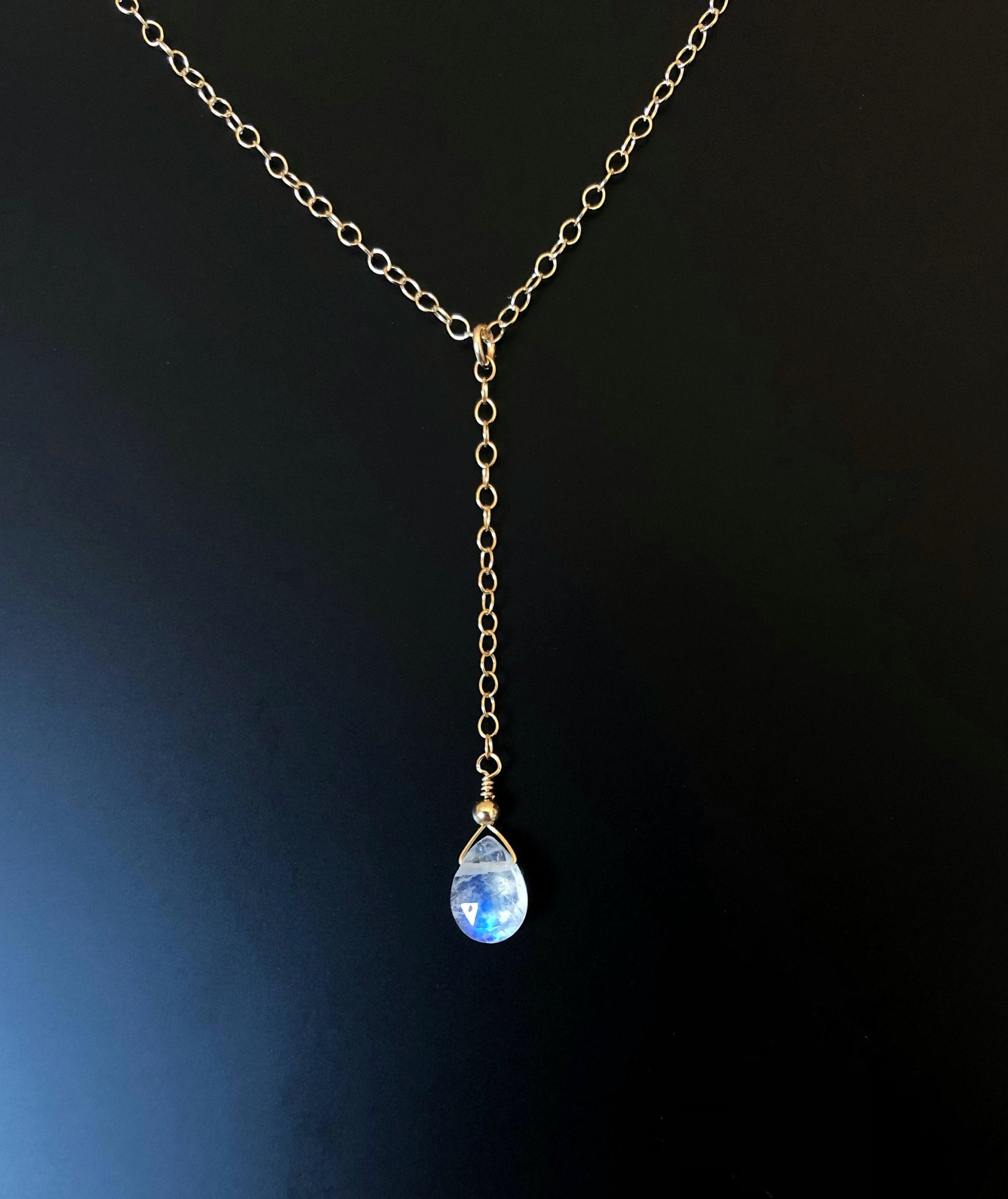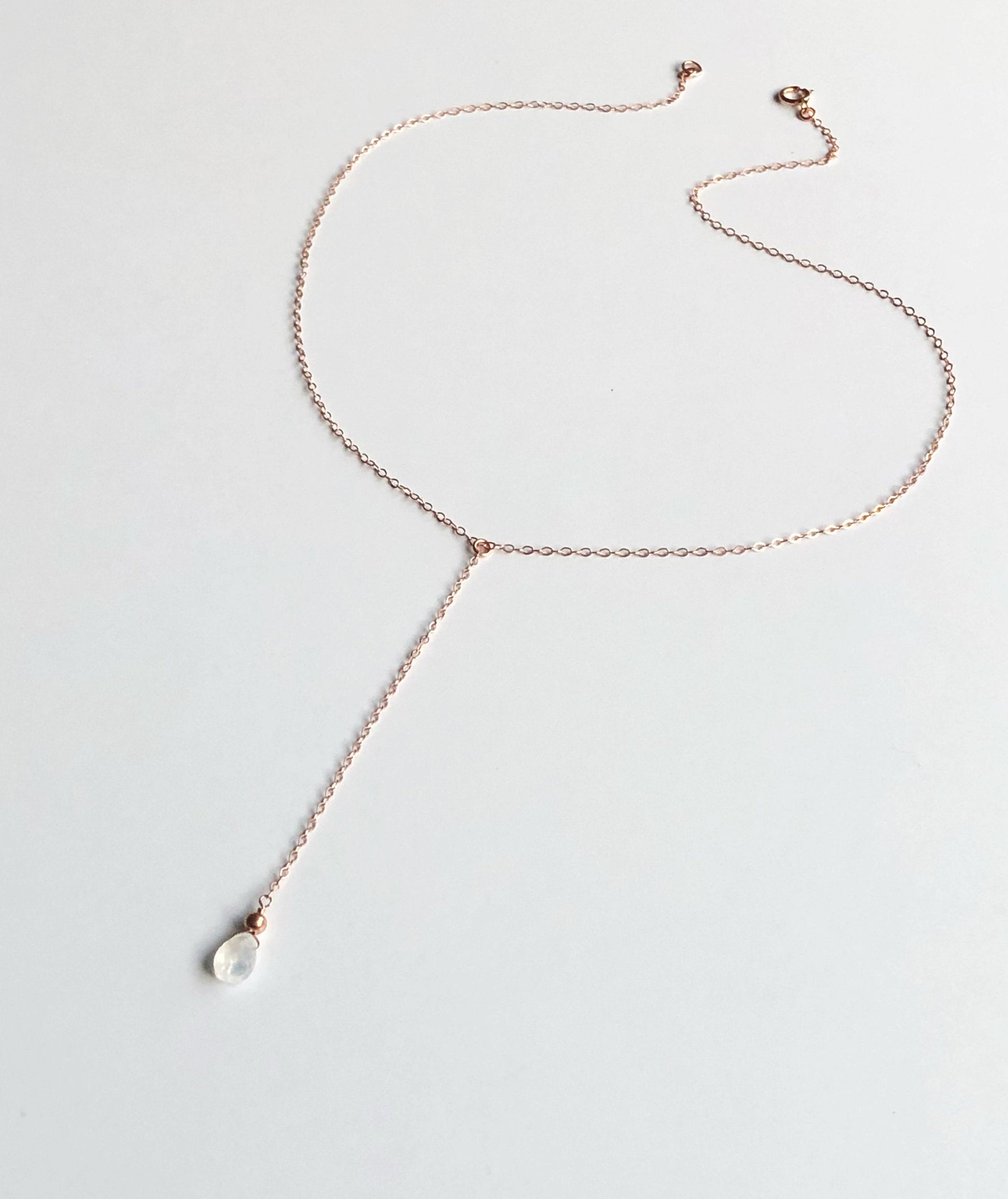 Y Kette mit Mondstein, Mondsteinkette Silber, Halsketten Gold filled, Rose Halskette